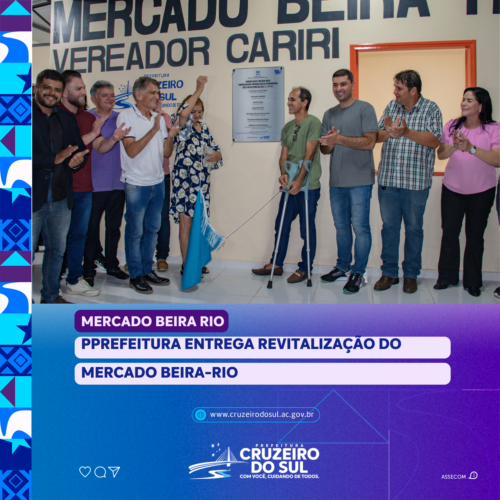 O prefeito Zequinha Lima, de Cruzeiro do Sul, entregou nesta terça, 26, o principal espaço de pensões de Cruzeiro do Sul: o Mercado Beira Rio Francisco Ferreira de Vasconcelos “Cariri”.