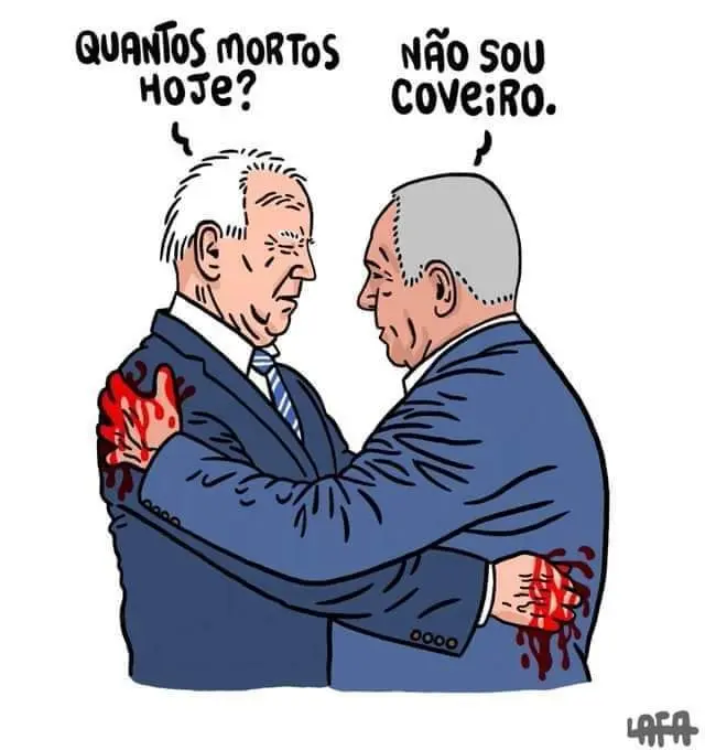 Enquanto o mundo assiste a um genocídio, Biden finge empatia com o povo palestino. Nem mesmo os 20 caminhões com “ajuda humanitária” prometidos (um band-aid em uma fratura exposta, diga-se de passagem) entrarão em Gaza. A desculpa esfarrapada de combater o Hamas é desmontada ao vivo pelas telas de TV que hoje mostram que o massacre já está se estendendo pela Cisjordânia. Preparem o coração para dias terríveis onde, de mãos atadas, assistiremos ao extermínio de um povo.
