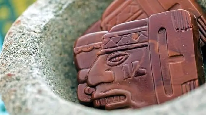 Muitos associam o chocolate a países europeus como a Suíça e a Bélgica, mas ele foi criado na Mesoamérica. E os olmecas, maias e astecas foram alguns de seus primeiros consumidores. Esses impérios cobriam os atuais México, Equador, Guatemala, El Salvador, Belize e Honduras. Além das inúmeras pinturas e documentos escritos, arqueólogos descobriram vasos com resíduos de cacau nessas áreas podendo rastrear o seu uso até 1500 AC. A palavra “chocolate” vem da palavra da língua náuatle clássica xocolātl, e entrou no idioma português através do espanhol. Claro que o chocolate mesoamericano era muito diferente do chocolate atual. Durante o período maia era consumido como uma bebida amarga e picante, pois em vez de adicionar açúcar, eles adicionaram fubá e pimenta ao cacau para obter um sabor picante.