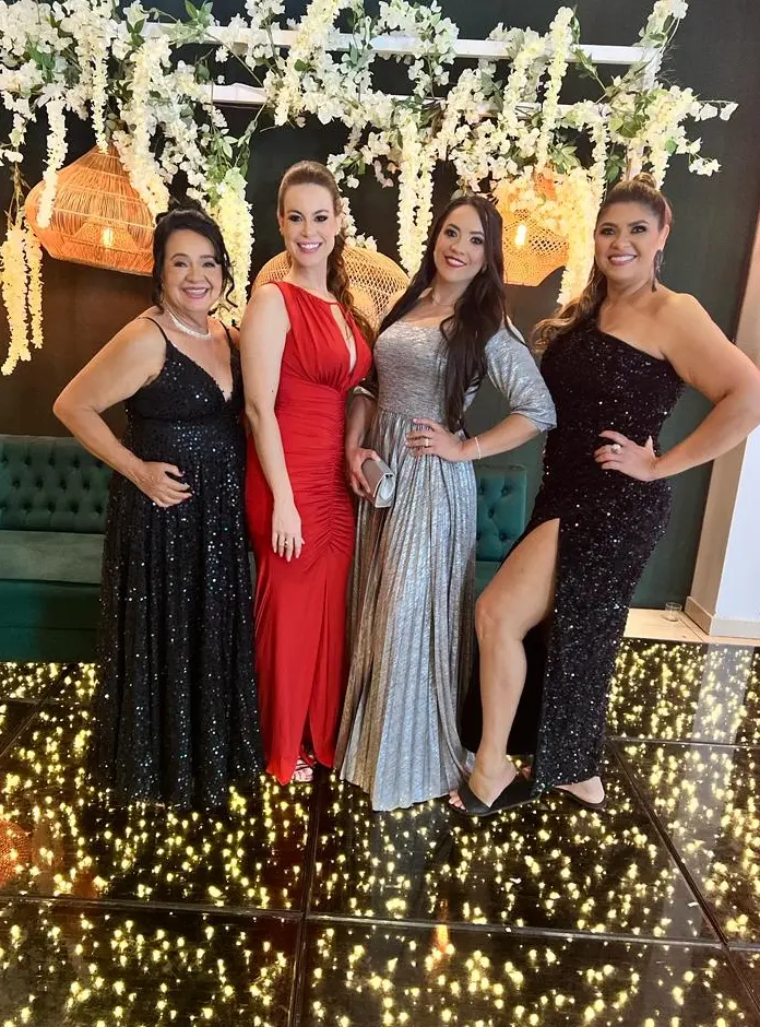 A psicóloga Cissa Andrade, Mariana Frizoni, Telma Castelan e Dra Daniela Neves eram pura animação no Baile das Esmeraldas, realizado no último sábado.
