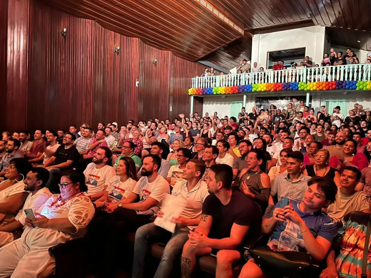 A abertura da 16ª Semana Acreana da Diversidade, com o tema “Somos Iguais?”, foi marcada por uma lotação máxima no Cine Teatro Recreio. A Associação de Homossexuais do Acre (AHAC), membro da Aliança Nacional LGBTQI, iniciou o evento nesta terça-feira, às 19 horas, reunindo uma plateia de mais de 500 pessoas. Mesmo enfrentando o calor, o público permaneceu firme para prestigiar essa noite memorável no coração dos acreanos LGBTQIAP+.