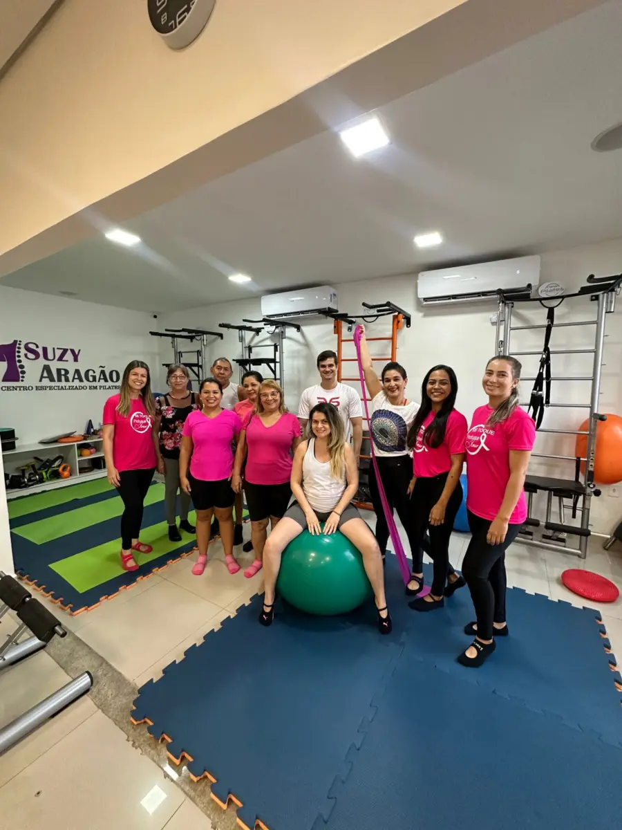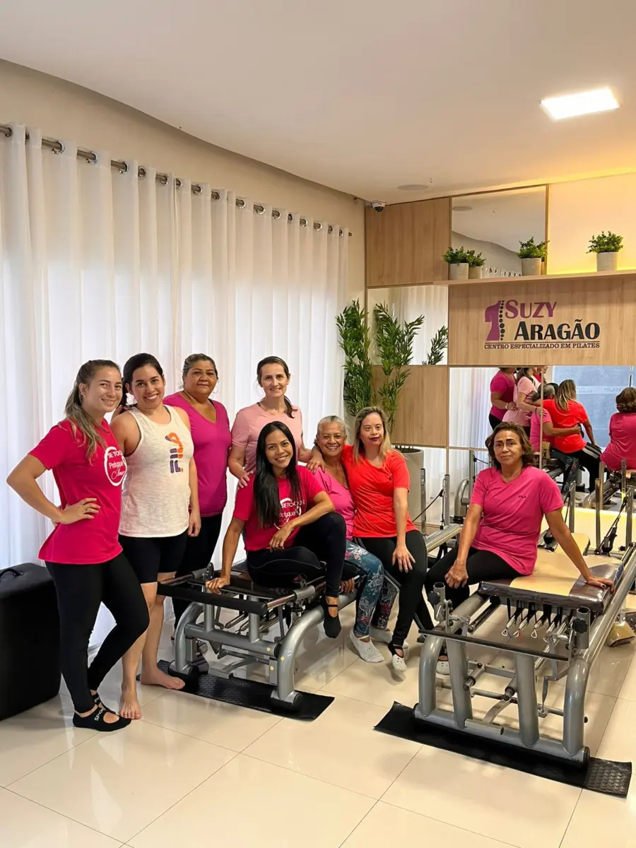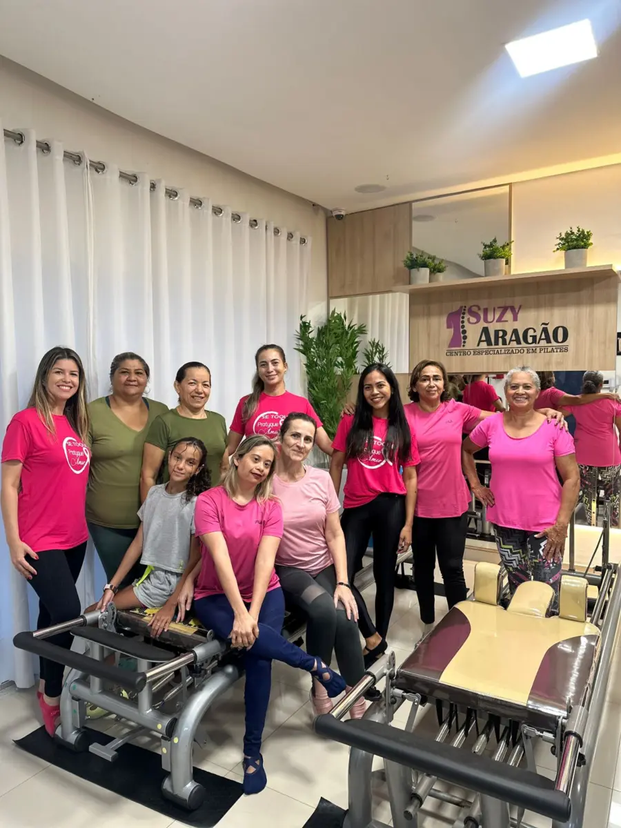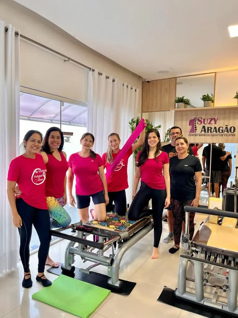 A Clínica de Pilates Suzy Aragão realizou uma ação em alusão ao Outubro Rosa, com objetivo de chamar atenção das mulheres que fazem pilates no espaço. A campanha Outubro Rosa visa conscientizar mulheres sobre a importância do diagnóstico precoce de câncer de mama, além do tratamento precoce.
