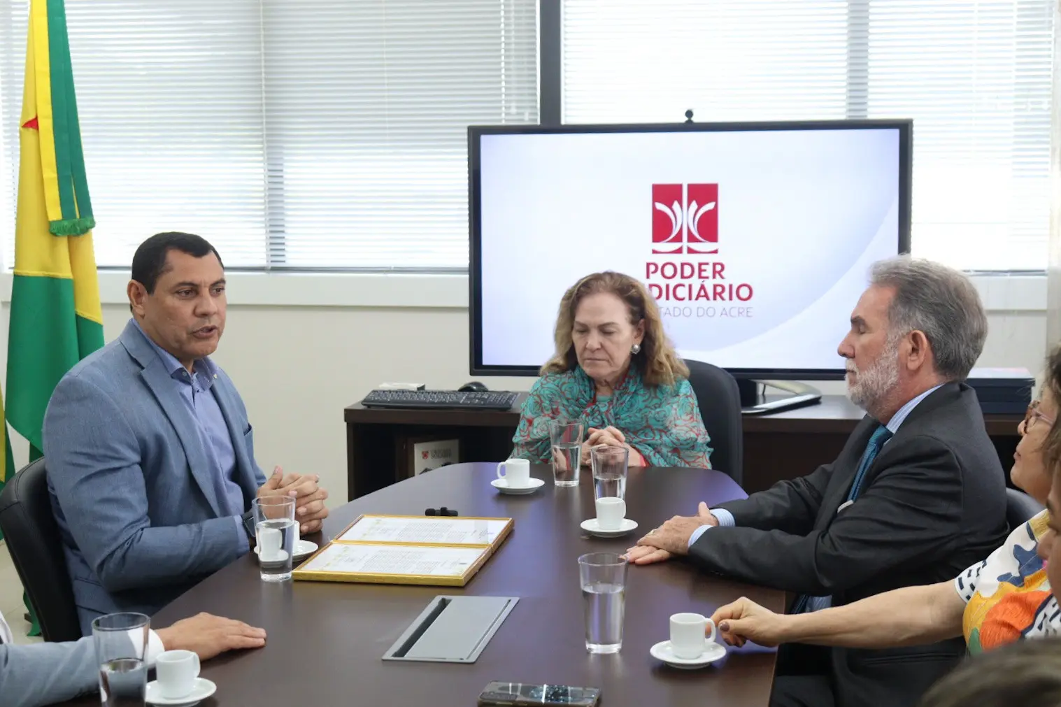A presidente do Tribunal de Justiça do Acre (TJAC), desembargadora Regina Ferrari, e o vice-presidente, desembargador Luís Camolez, receberam na segunda-feira (2) a visita do deputado federal Coronel Ulysses (União/AC).
