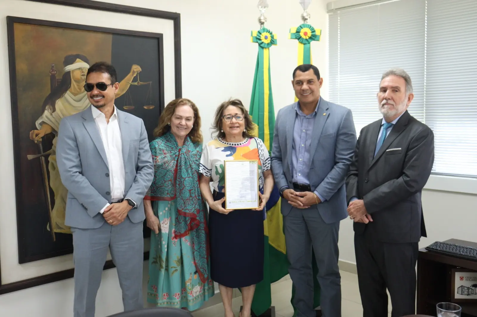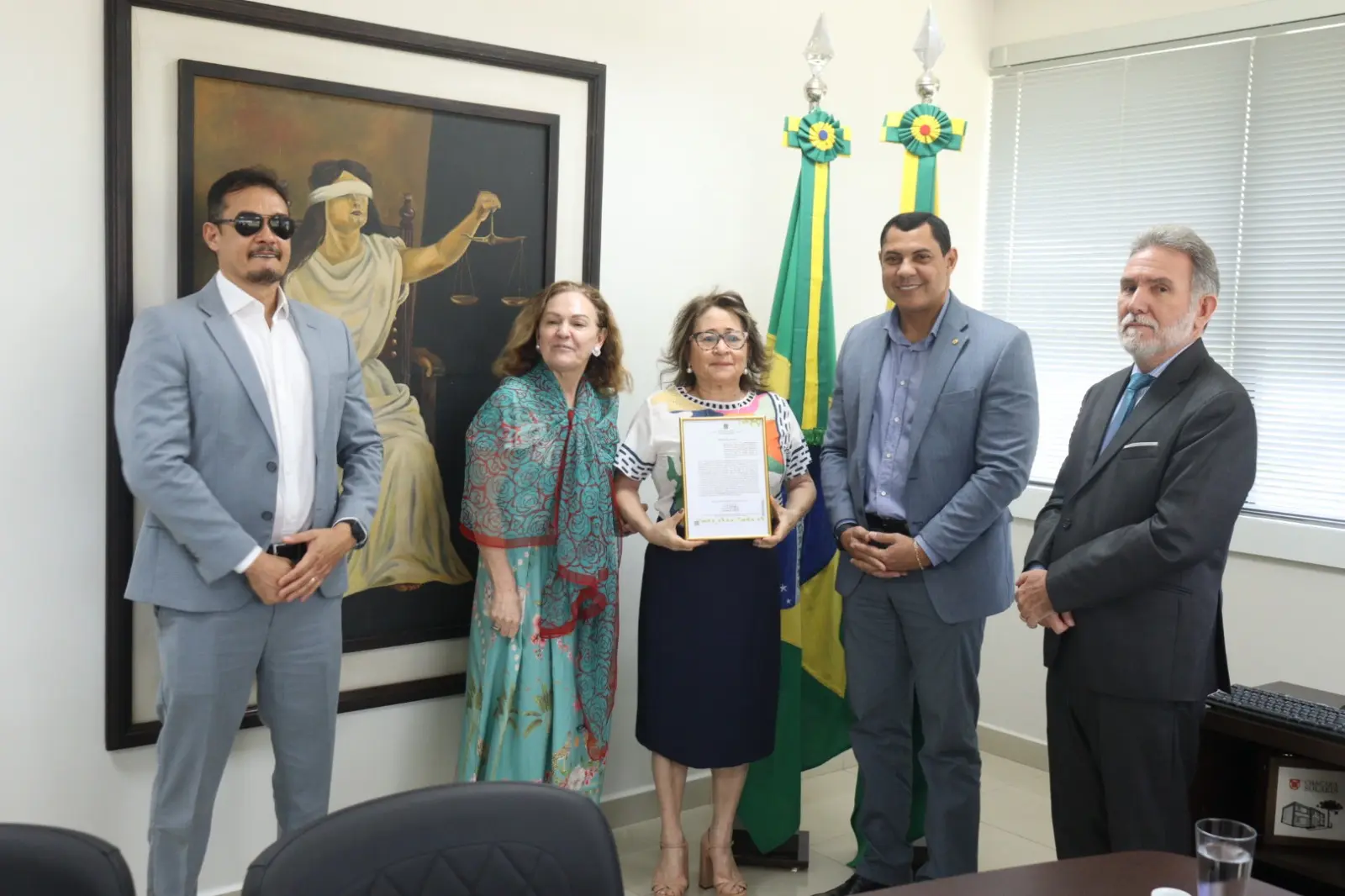 A desembargadora Denise Bonfim, presidente da Câmara Criminal, recebeu as homenagens em nome dos desembargadores Elcio Mendes e Francisco Djalma, que estavam cumprindo agenda fora da sede, agradeceu pelo reconhecimento, elogiou o Congresso Nacional e enfatizou o trabalho do Poder Judiciário. O desembargador Luís Camolez também parabenizou a Câmara Criminal pela atuação.
