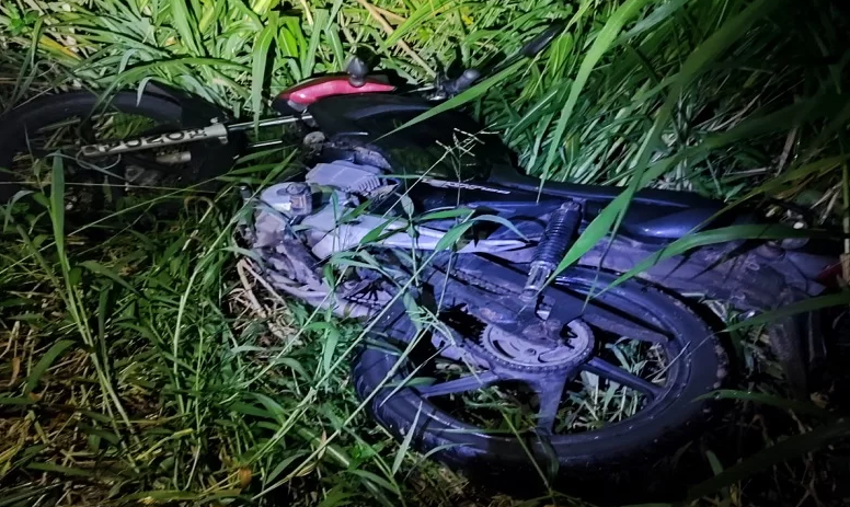 Após receber as informações, a guarnição iniciou buscas pela região e conseguiu localizar a motocicleta em uma área de difícil acesso.