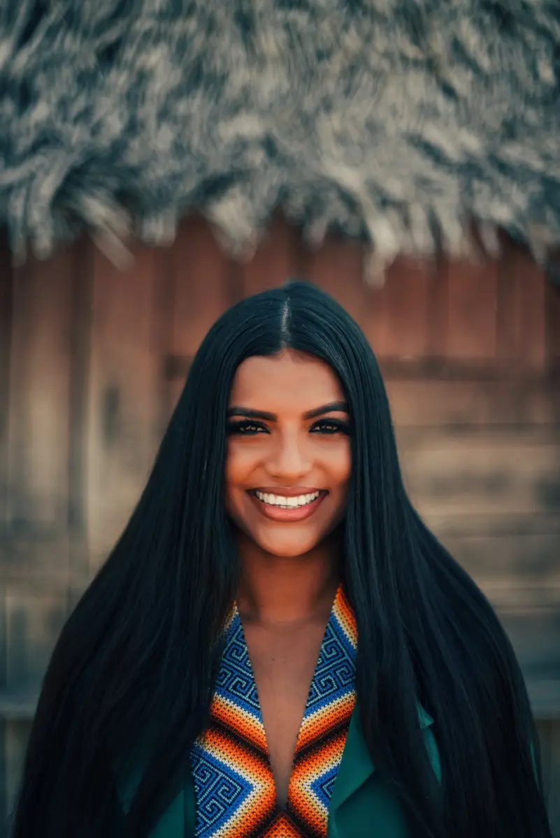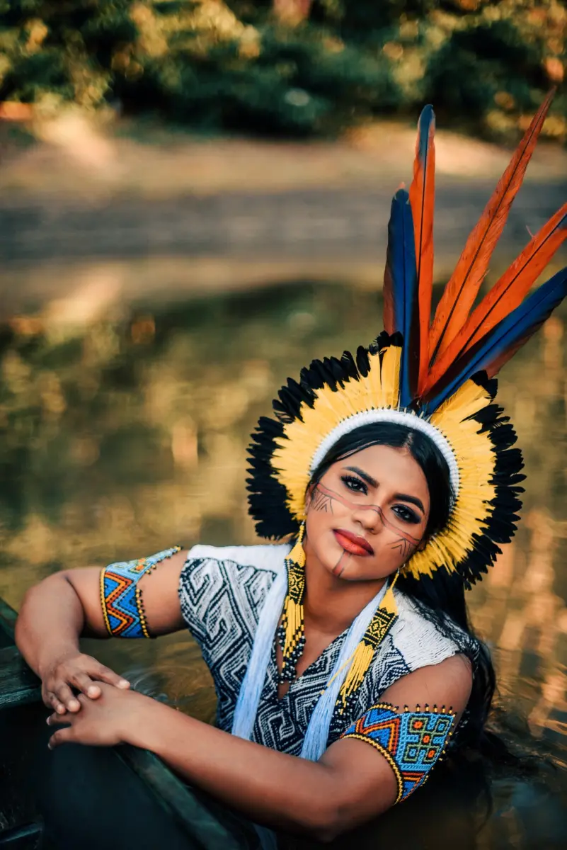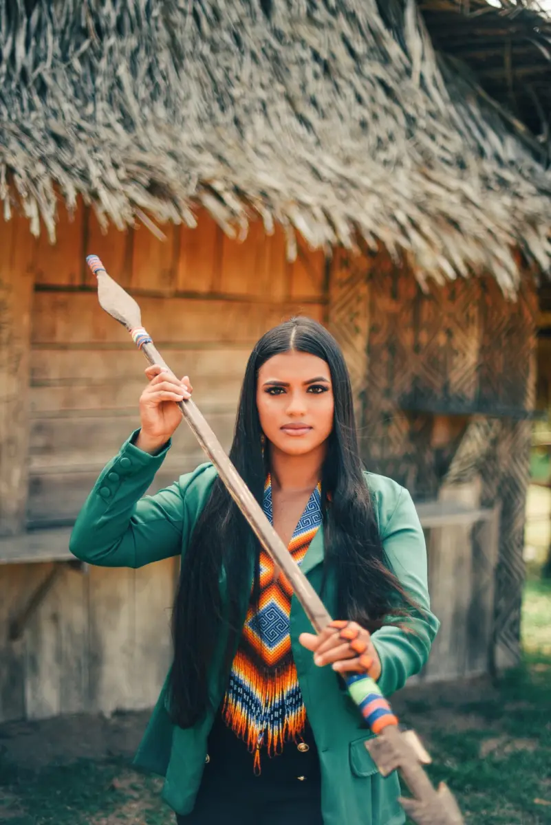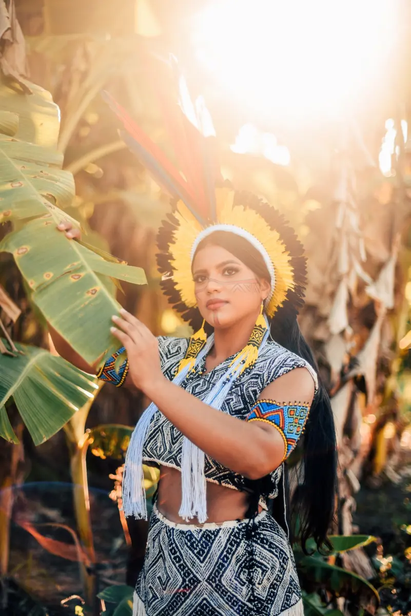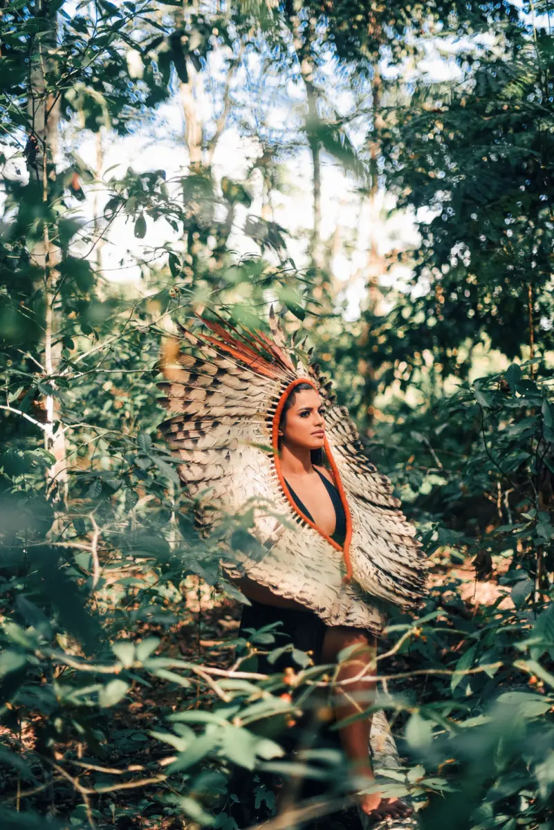 O ensaio fotográfico realizado pelo talentoso fotógrafo Alef Diaz celebra a extraordinária beleza da mulher indígena acreana, mais especificamente, da etnia Huni Kuin. A protagonista dessa história visual é Isis Maiara Martins Freitas Kaxinawá, uma jovem nativa e orgulhosa residente de Tarauacá, no Acre. Aos 21 anos, ela conquistou o título de Miss Beleza Ancestral em março deste ano, um reconhecimento de sua notável herança e cultura.