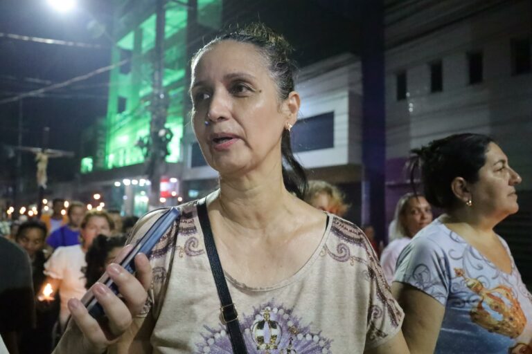 Ao ContilNet, Cristina disse que acompanha a procissão há muitos anos e já foi no Círio de Nazaré em Belém, no Pará, que reúne milhares de fiéis. A devota de Nossa Senhora disse que este ano está descalça para pedir a cura de uma doença.