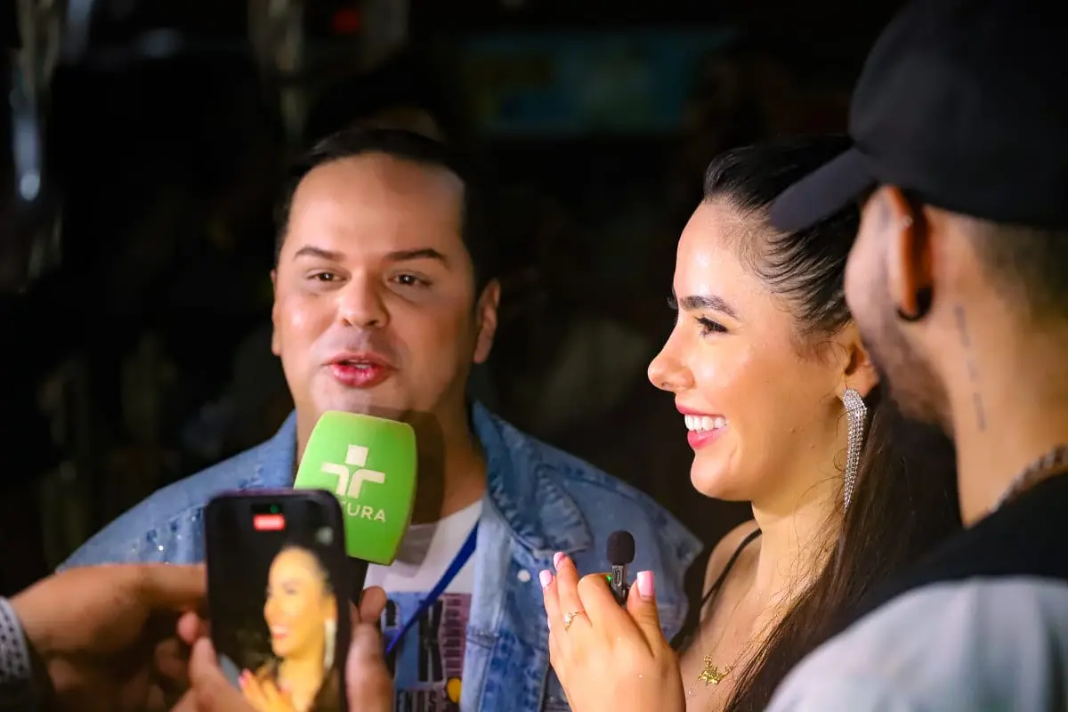 O jornalista entrevistando a vocalista Juliana Bonde. Foto: Juan Diaz/ContilNet