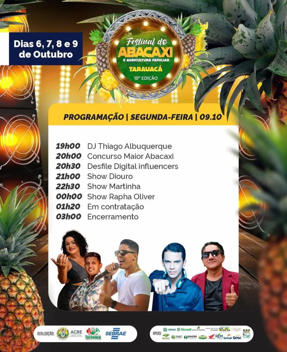 Com Douglas Richer como guia nessa jornada, os leitores do ContilNet podem esperar uma cobertura completa e envolvente do 10° Festival do Abacaxi em Tarauacá, proporcionando uma experiência única e próxima das festividades e da cultura dessa encantadora cidade.