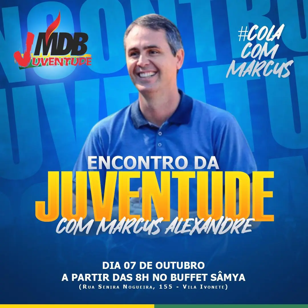 O pré-candidato do MDB à Prefeitura de Rio Branco em 2024, Marcus Alexandre, se encontra na amanhã deste sábado (7), com integrantes de movimentos jovens que apoiam sua pré-candidatura. O encontro será no Buffet Samya, na Rua Samira Nogueira, no bairro Vila Ivonete, em Rio Branco.