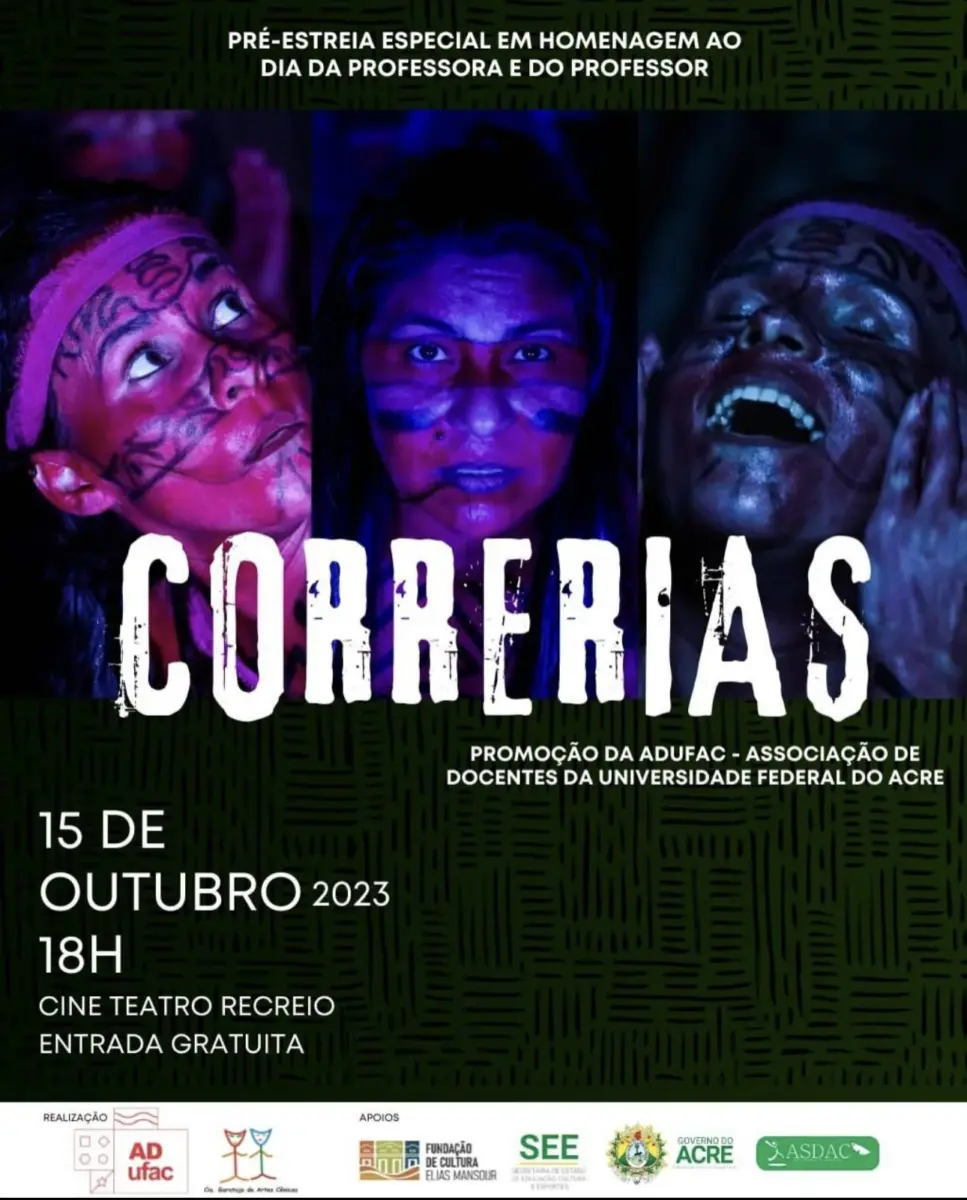 No domingo, 15, às 18h, no Cine Teatro Recreio, a Companhia Garatuja de Artes Cênicas realizará uma pré-estreia especial do espetáculo “Correrias.” Este evento é exclusivo para docentes convidados da ADufac devido à capacidade limitada do teatro.