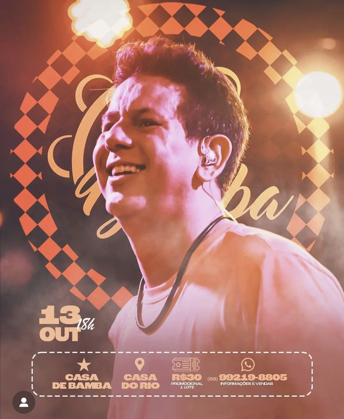 -Acontece nesta sexta-feira (13), em Rio Branco, o Casa de Bamba, evento de samba com o cantor Brunno Damasceno, na Casa do Rio.