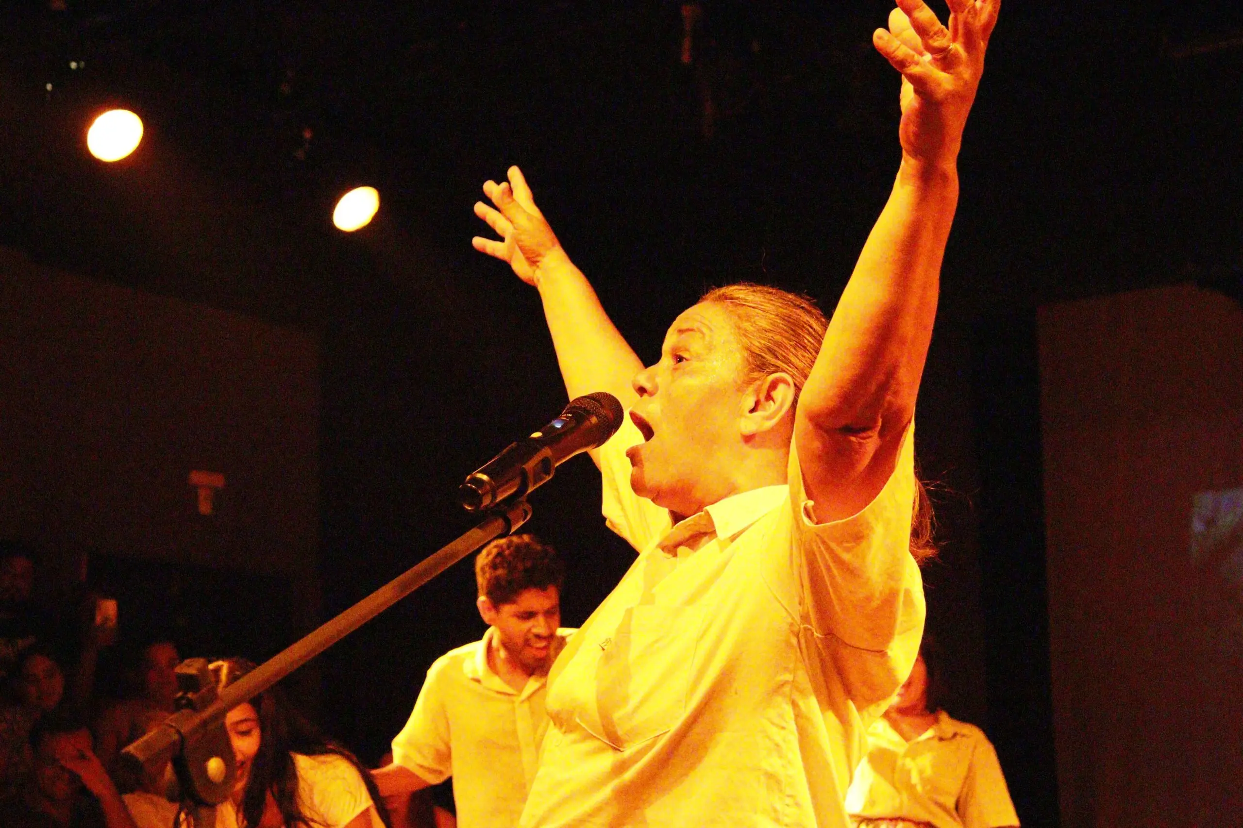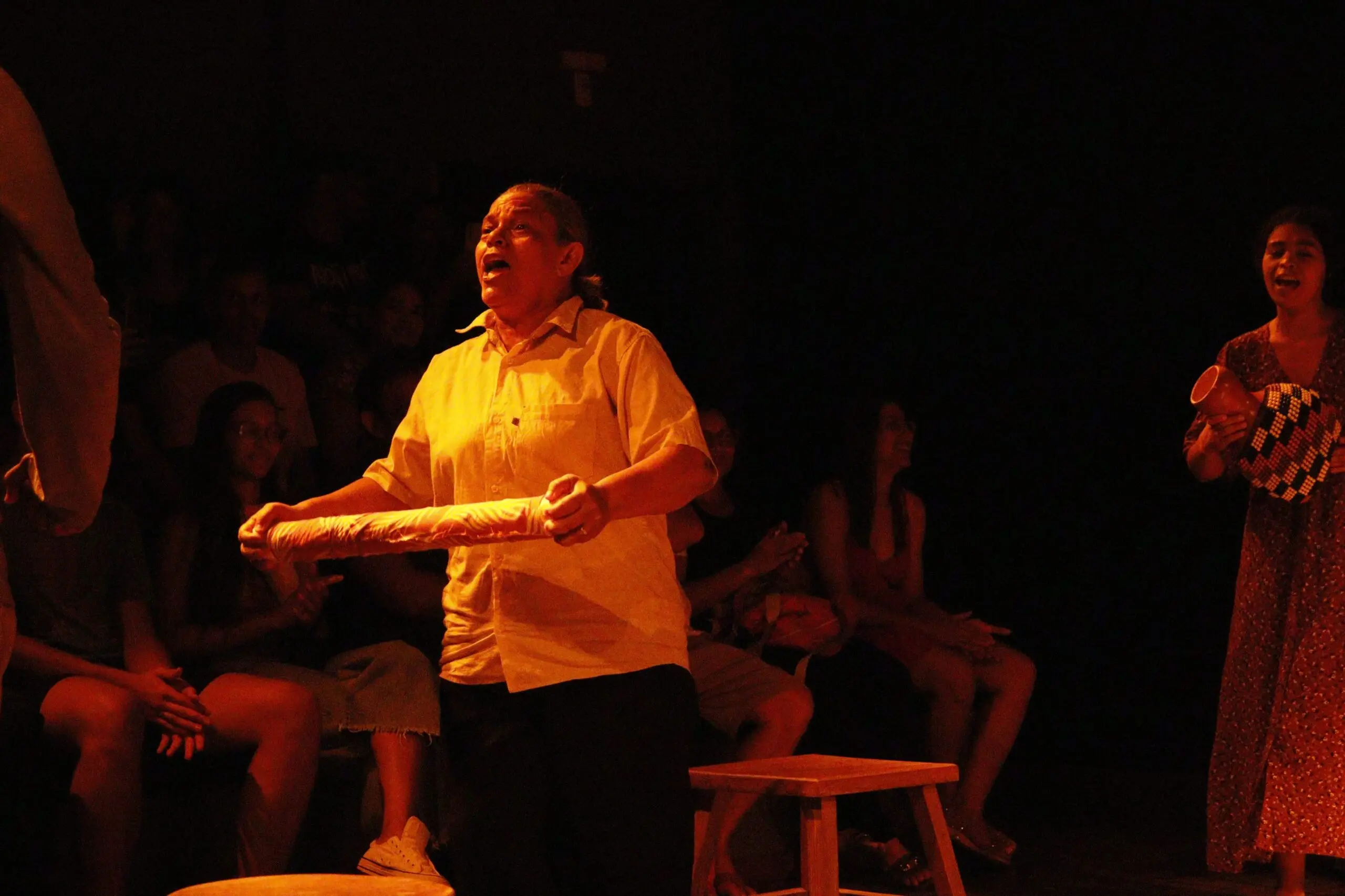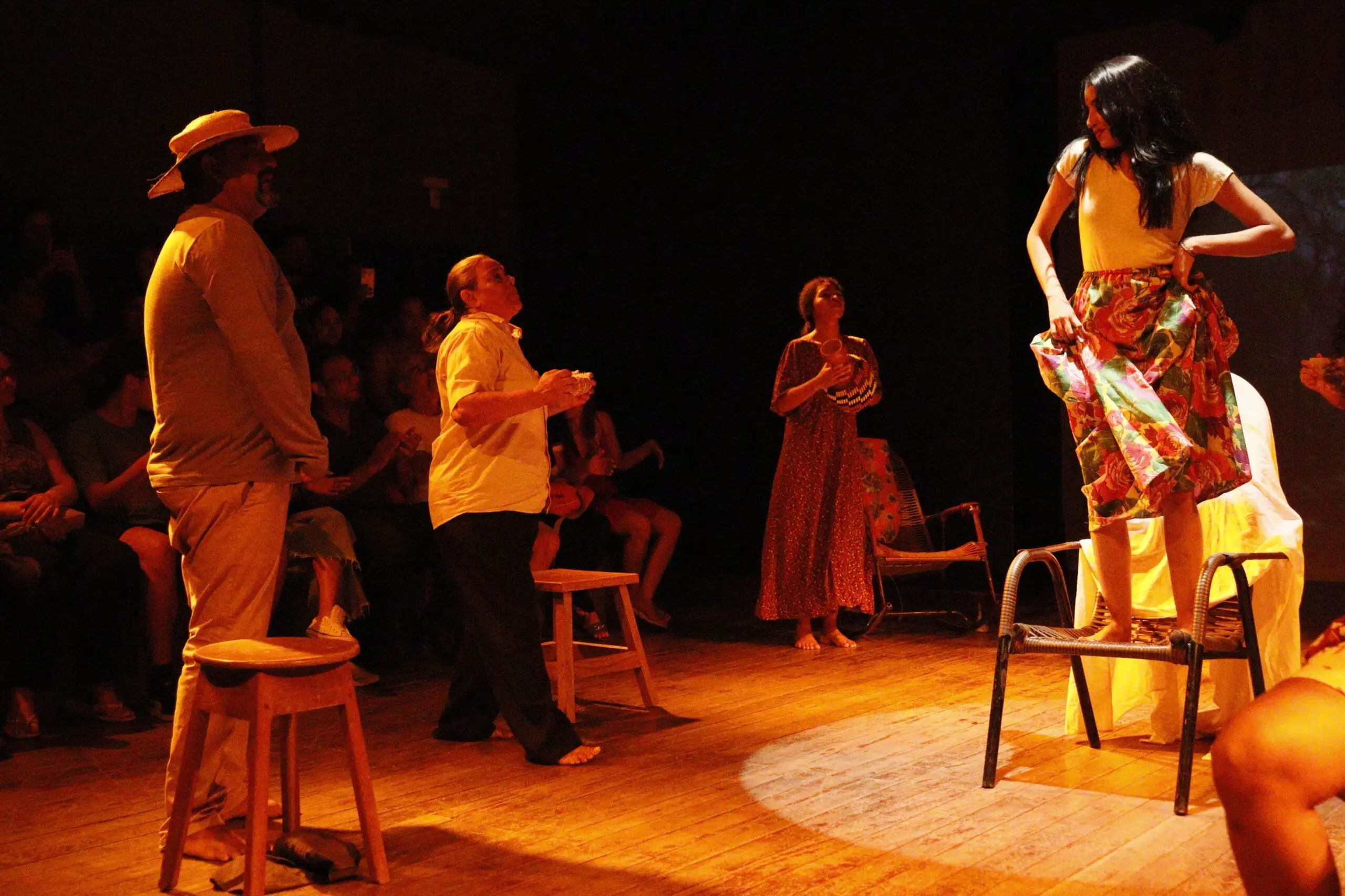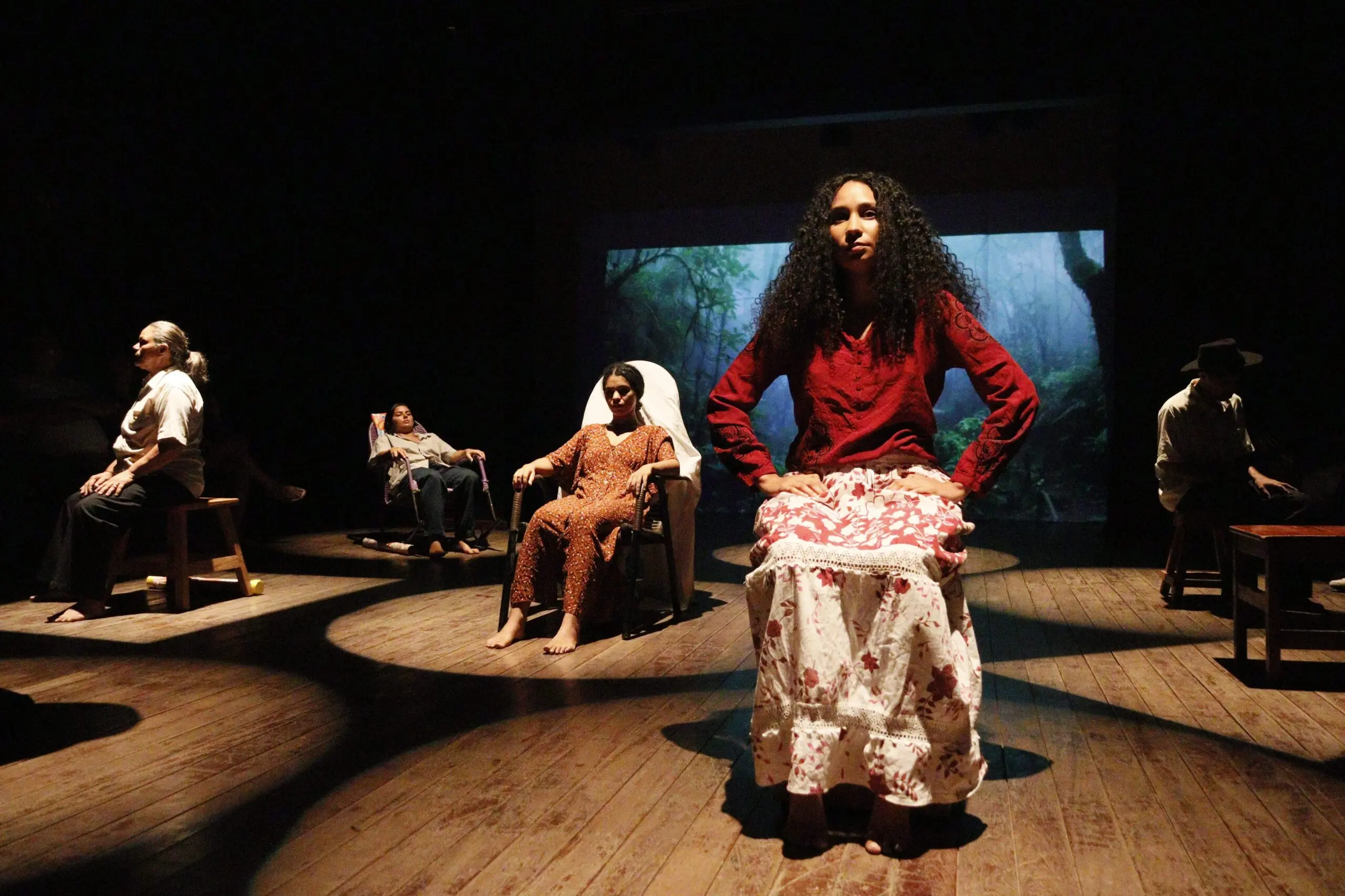 “Lá no seringal…” é a expressão máxima que rememora um passado comum a todo acreano. As pessoas que usam essa expressão são avós, pais, mães, tias, que foram seringueiros ou viveram em moradias simples, feitas de paxiúba, no coração da floresta amazônica. No presente, estas histórias são contadas para as gerações mais novas e são a matéria prima do espetáculo “Vozes do Seringal”, do Coletivo Taboqueiro, apresentado na noite da última quarta-feira, 19, no Teatro de Arena do Sesc, em Rio Branco.