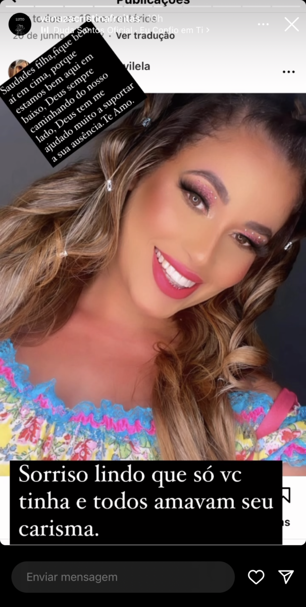 Em sua conta no Instagram, a mãe de Nayara também fez um desabafo sobre a perda.