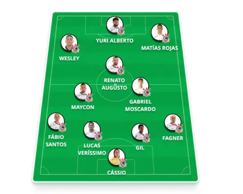 Escalação provável: Cássio, Fagner, Gil, Lucas Veríssimo e Fábio Santos; Gabriel Moscardo e Maycon; Renato Augusto, Rojas e Wesley (Romero); Yuri Alberto.