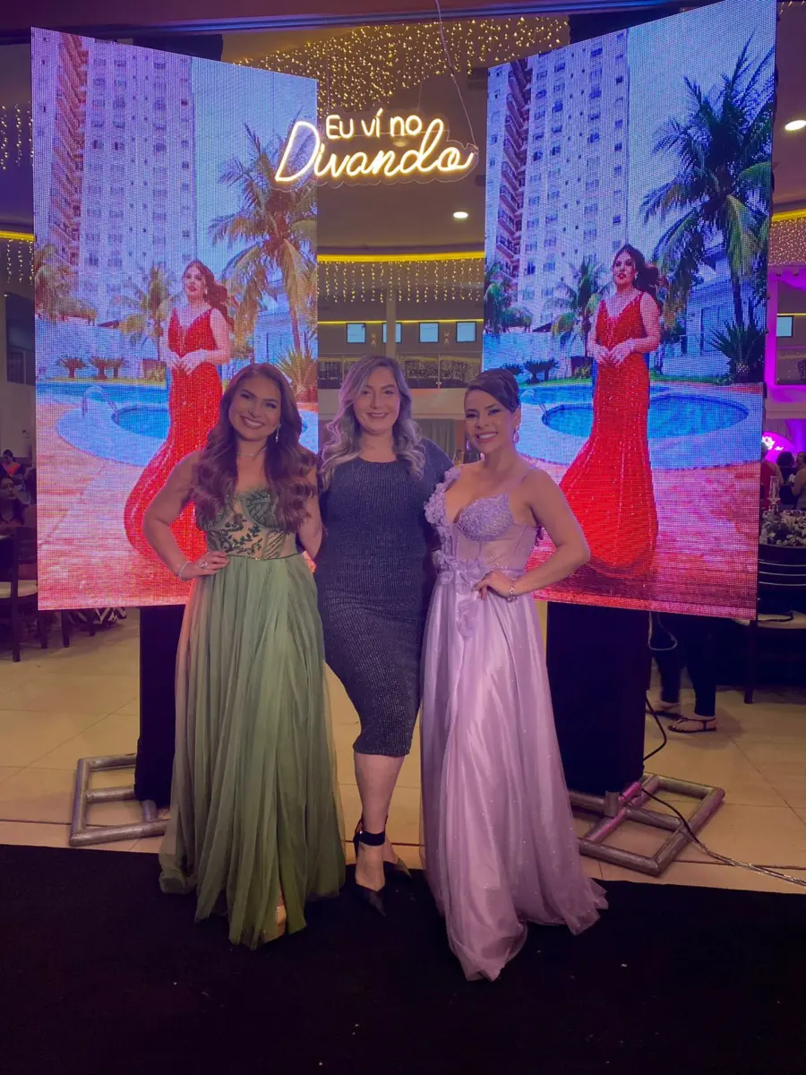Thaysa Vilela ao lado das anfitriãs, Maykeline e Elita Maia. Foto: Cedida