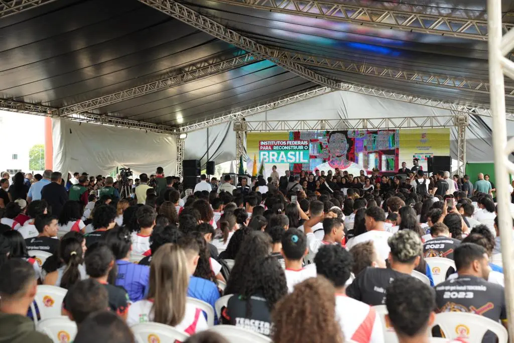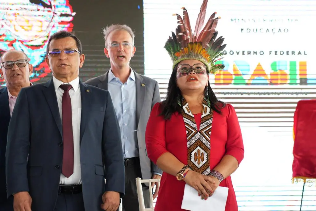 O governador Gladson Cameli, a vice-governadora Mailza Assis e o prefeito de Rio Branco, Tião Bocalom, ao lado da reitora do Ifac, Rosana Cavalcante, receberam o ministro no evento. Essa é pelo menos a 6º visita ministerial do governo Lula no Acre.