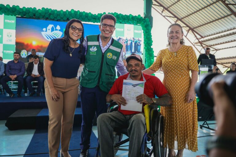 O Governo do Estado, por meio do Instituto de Terras do Acre (Iteracre), em parceria com o Tribunal de Justiça do Estado do Acre (TJAC), concedeu mais 525 títulos definitivos em Senador Guiomard, na Quadra Poliesportiva da Escola Cívico Militar Aldaci Simões da Costa.
