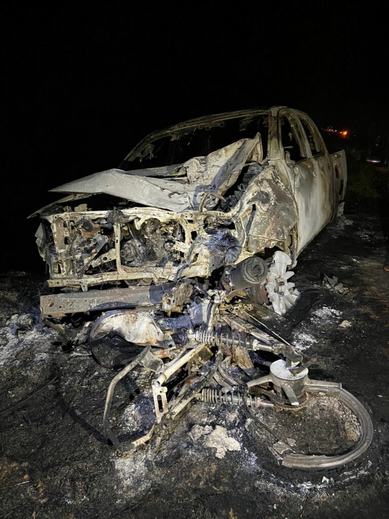 O impacto foi tão grande que ambos os veículos instantaneamente se envolveram em chamas, deixando o condutor da camionete em chamas enquanto Cleude, faleceu no local.