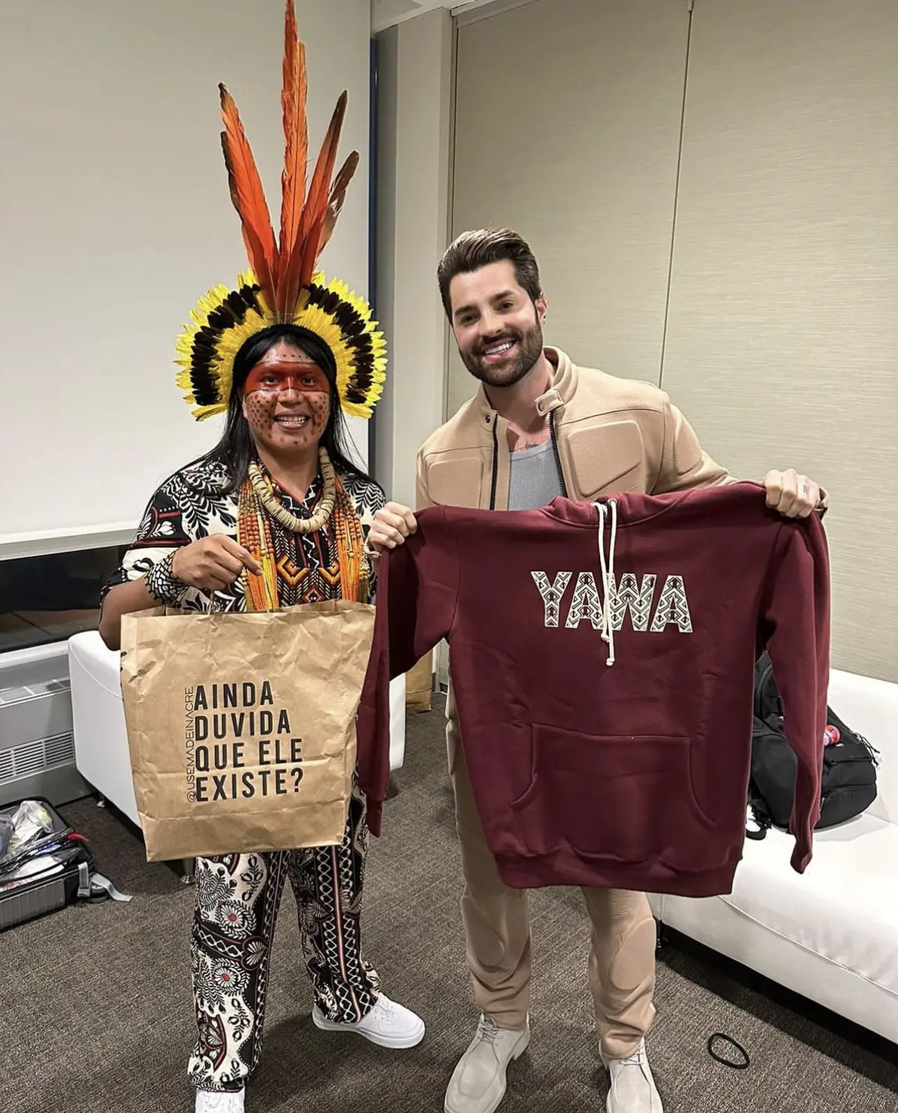 Em um momento especial durante o encontro, Alok recebeu um presente inusitado: um moletom de uma marca originária do Acre. O DJ não escondeu sua surpresa ao reconhecer o produto, comentando, “Eu conheço essa marca,” ao receber o mimo.