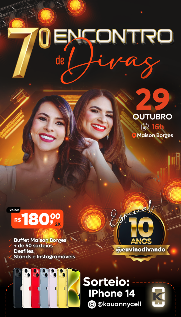 No dia 29 de outubro, a aguardada 7ª edição do Encontro de Divas está marcada para acontecer a partir das 16h na Maison Borges, em Rio Branco. Este evento de moda é organizado pelas influenciadoras Maykeline Maia e Elita Maia, conhecidas por mediar o perfil @euvinodivando. O Encontro de Divas é famoso por oferecer mais de 50 prêmios em sorteios, jantar, desfiles, stands e espaços instagramáveis criativos para fotos. Além disso, encerrando o evento, haverá o sorteio de um iPhone 14, oferecido por Kauanny Cell.