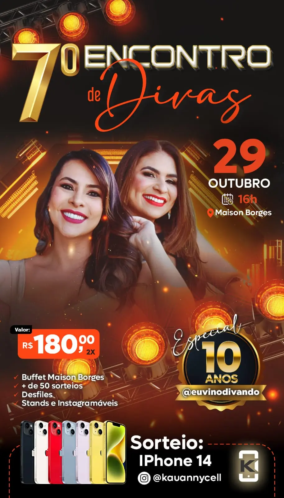 A festa que já é sucesso todos os anos já tem data confirmada, dia 29 de outubro a partir das 16h na Maison Borges. Essa edição vai trazer mais glamour pois é a celebração de 10 anos da vitrine virtual @euvinodivando das influenciadoras Maykeline e Elita.