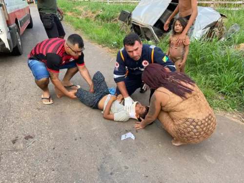 Motorista perde controle, carro capota e atinge motocicleta na estrada de Porto Acre