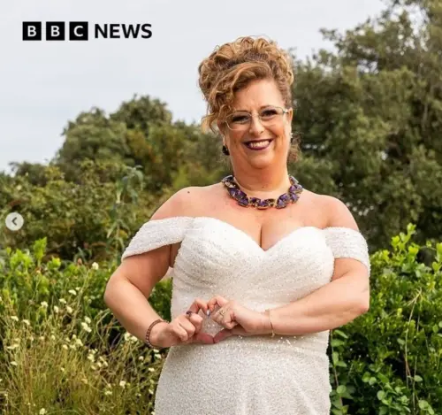 Como não conseguia encontrar o parceiro certo, a britânica e 42 anos primeiro se presenteou com um anel de noivado de diamantes, como sempre sonhara.