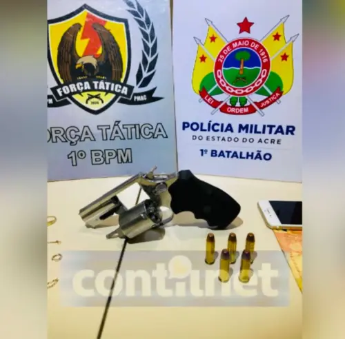 Durante a revista pessoal, os policiais encontraram um revólver calibre .38, o qual estava municiado com cinco munições intactas. O flagrante de porte ilegal de arma de fogo resultou na prisão de Alcivan Souza Bregencio.