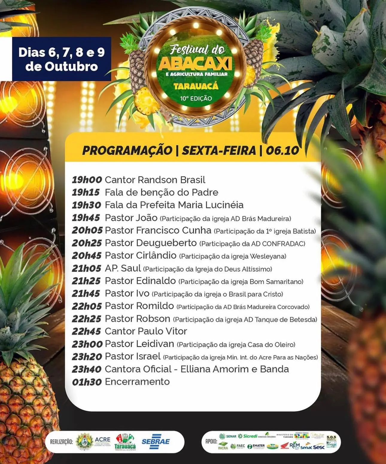 A Prefeitura de Tarauacá, por meio da Secretaria de Cultura, com grande entusiasmo apresentou na noite de terça-feira (3), a programação oficial do 10° Festival do Abacaxi, um evento que é ansiosamente aguardado pela comunidade local. Este festival é uma das celebrações mais importantes do município.