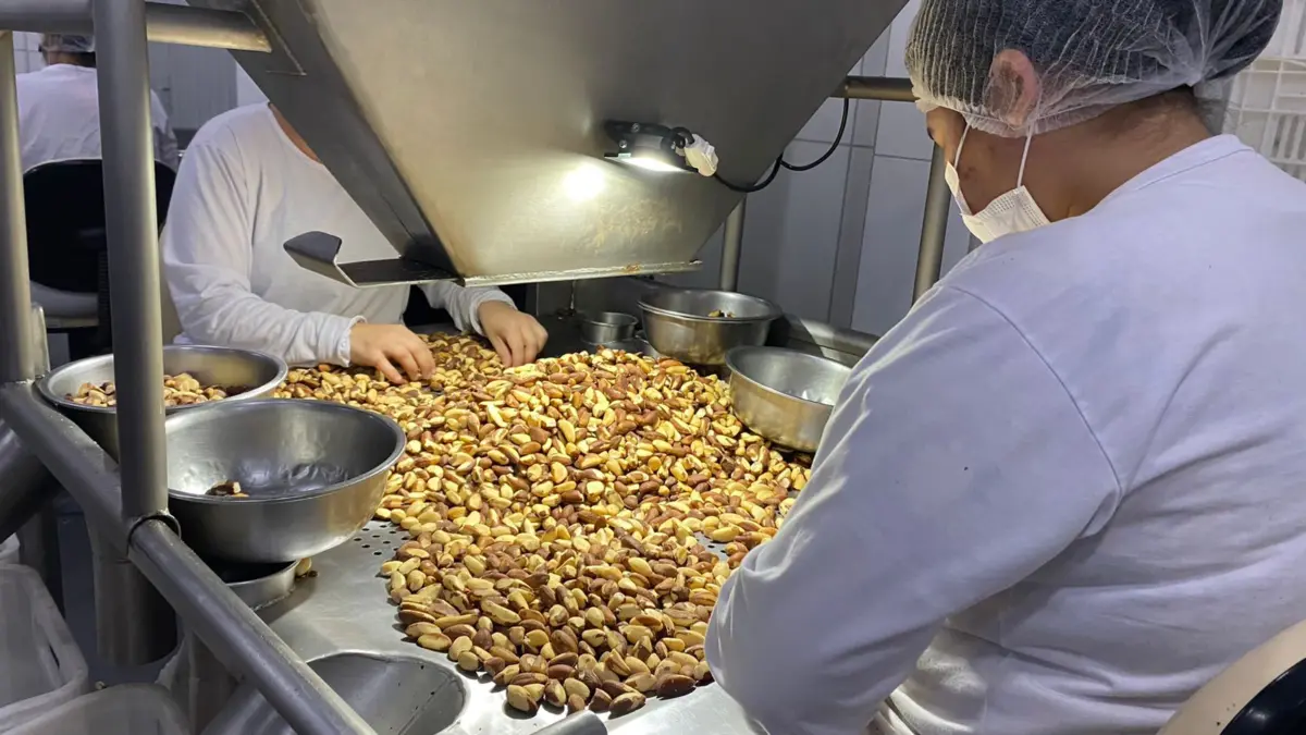 Em comitiva, os visitantes conheceram todo o processo de beneficiamento da castanha, um dos produtos carro-chefe da cooperativa.
