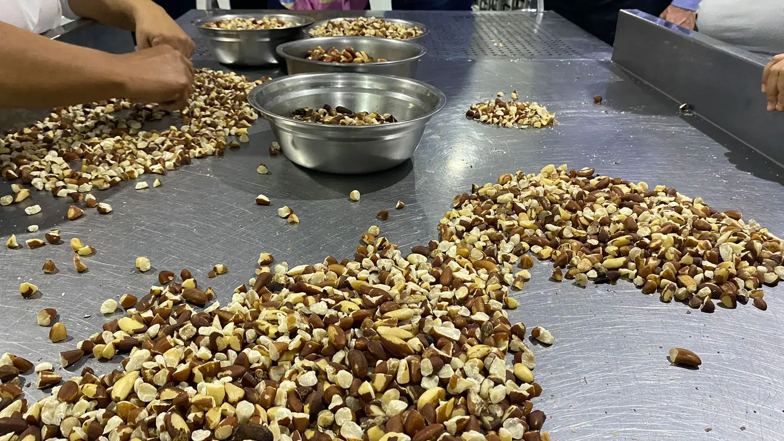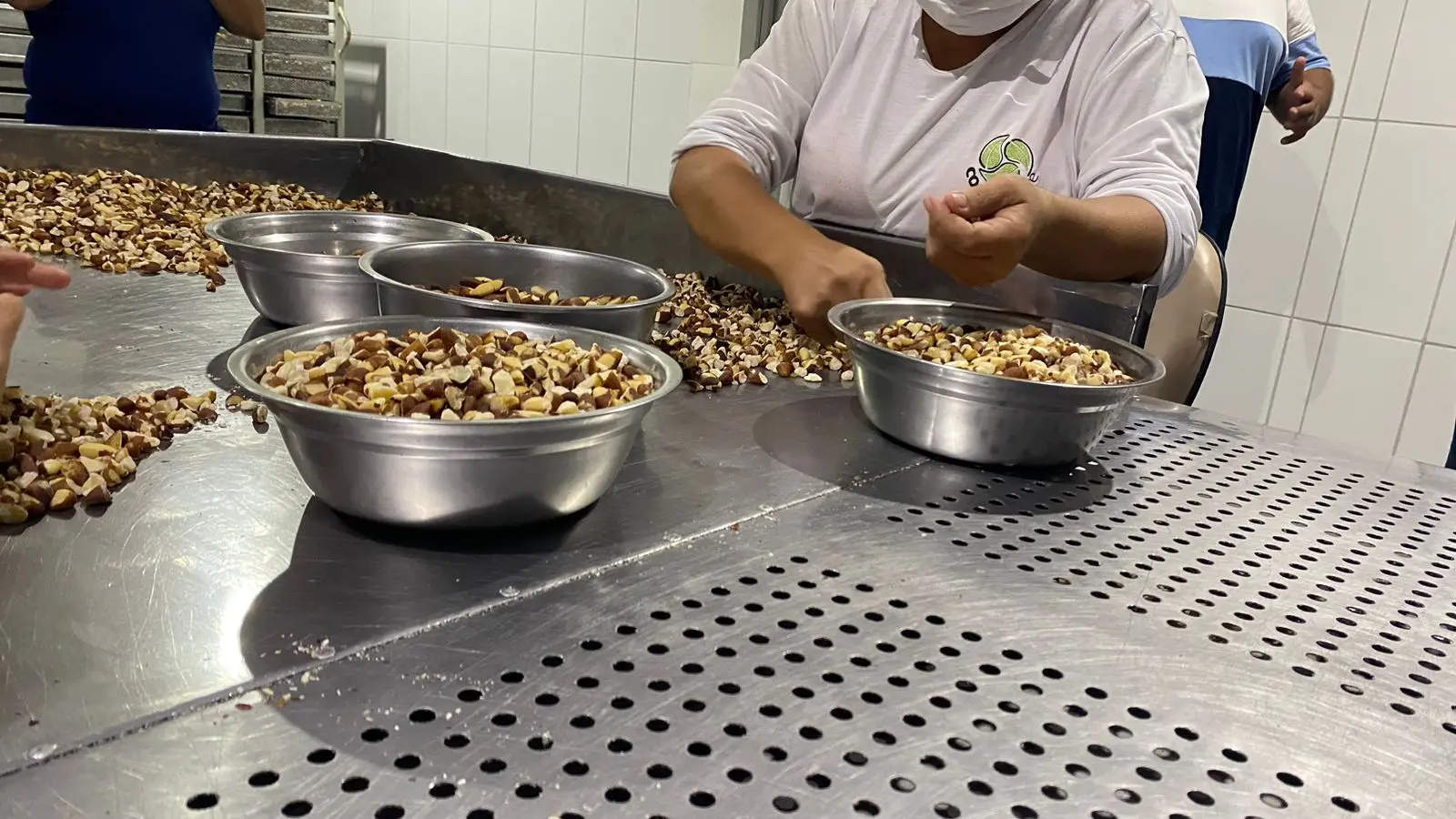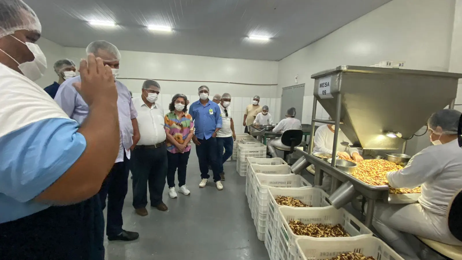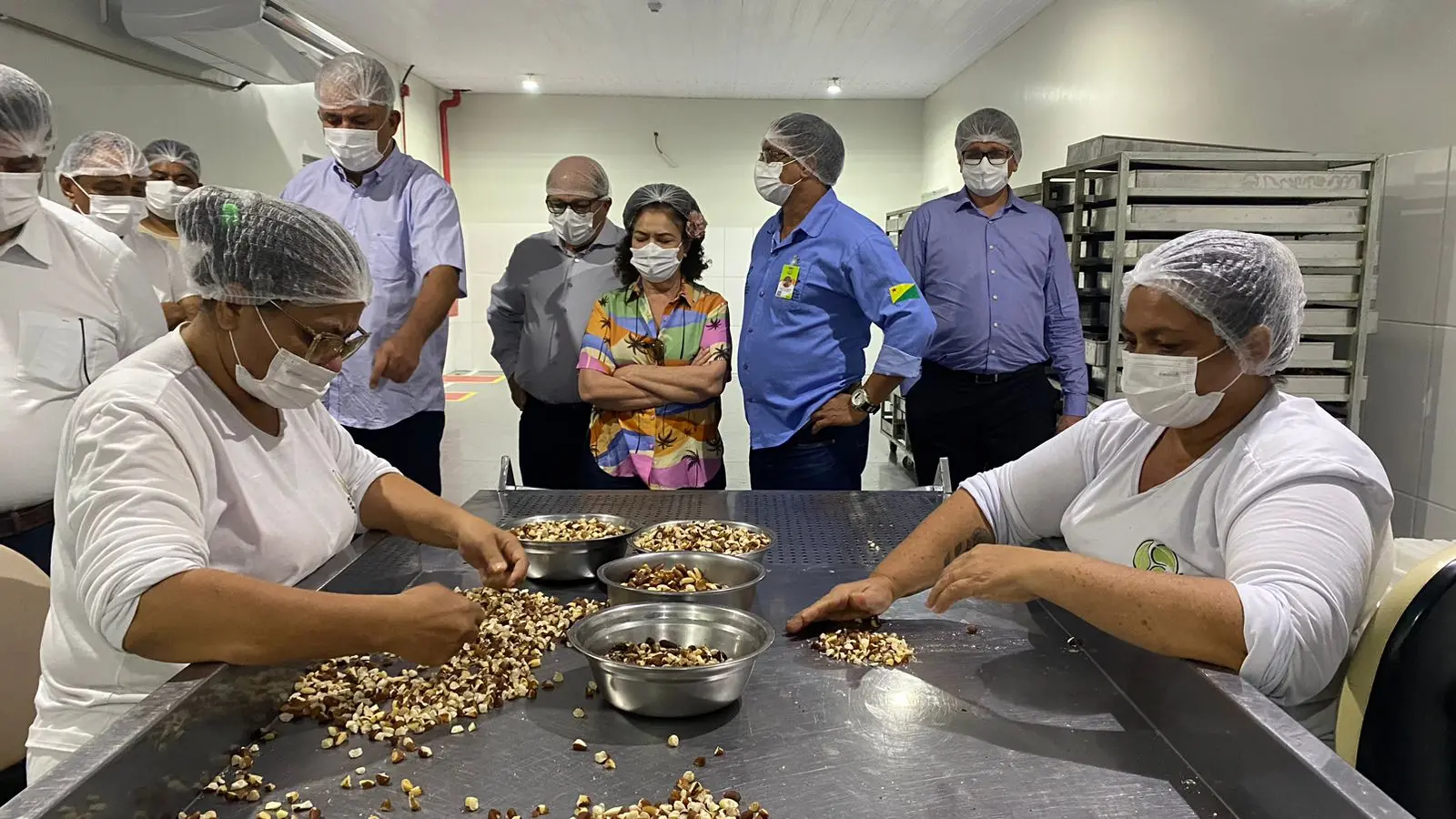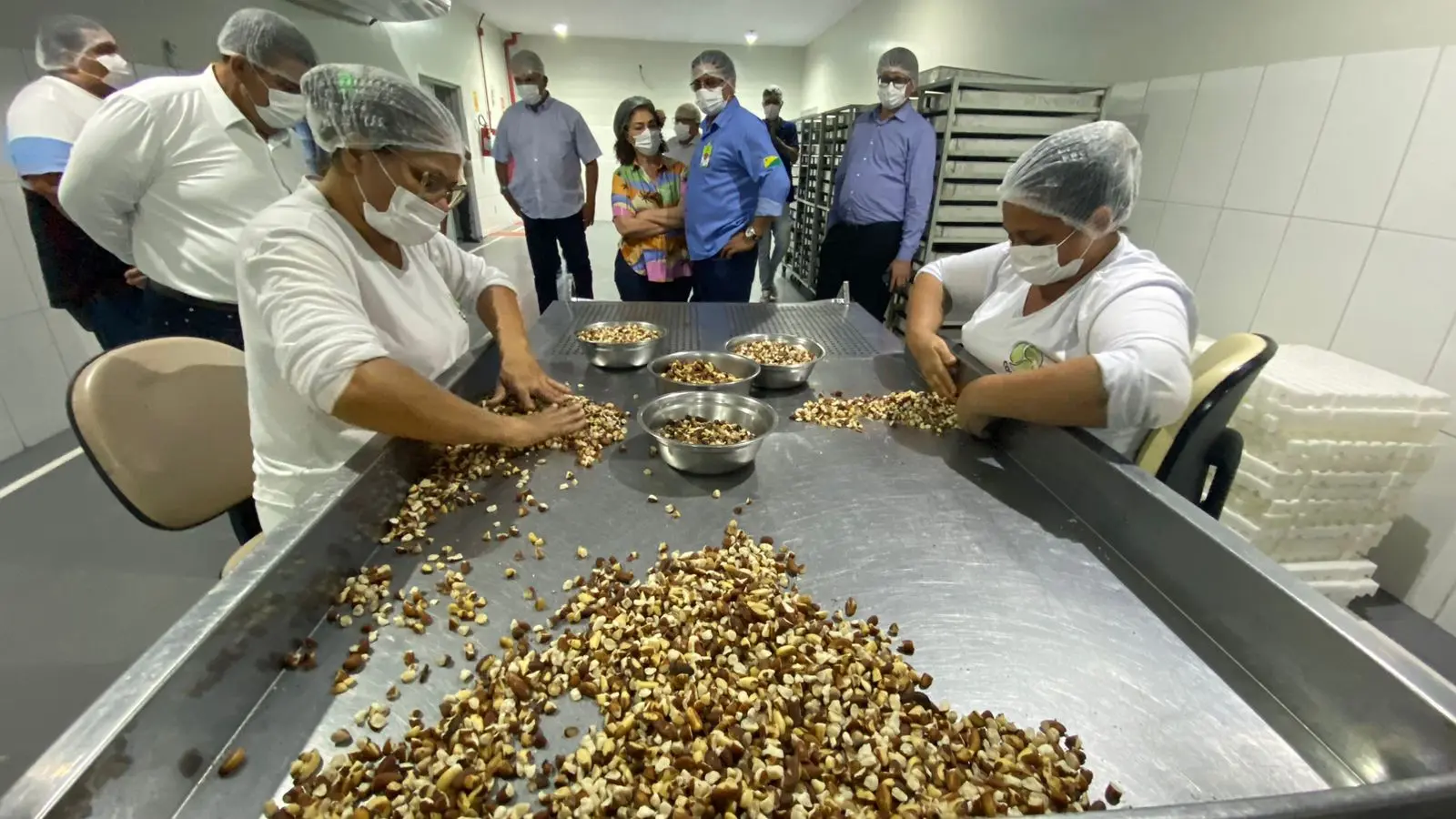 Em comitiva, os visitantes conheceram todo o processo de beneficiamento da castanha, um dos produtos carro-chefe da cooperativa.