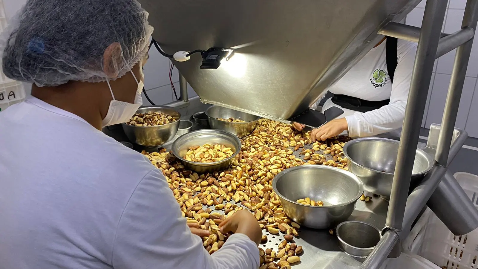 O presidente da Organização das Cooperativas Brasileiras (OCB), junto do presidente da organização no Acre, Valdemiro Rocha, visitou, nesta quinta-feira (5), a agroindústria de beneficiamento da castanha da Cooperacre.