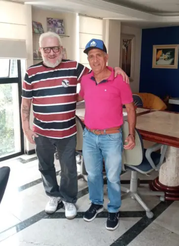 Luiz Cléber (d) ao lado de Neórico (e), um dos maiores zagueiros da história do futebol acreano/Foto arquivo pessoal