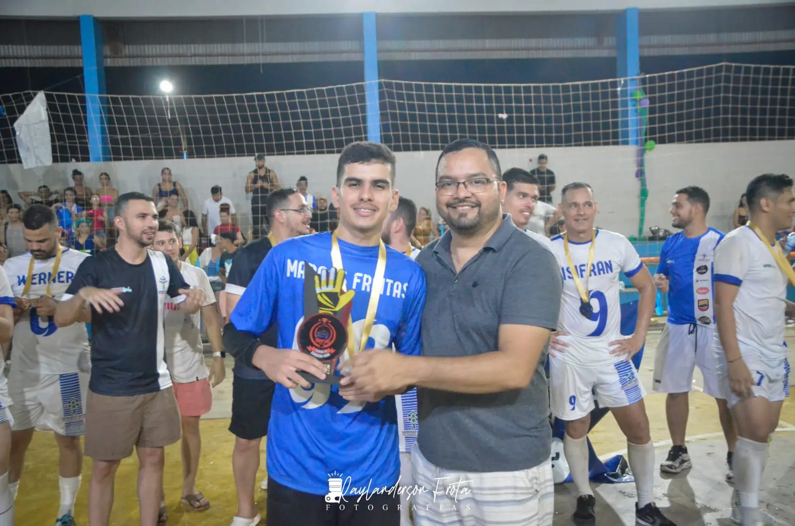 O estudante de medicina Tarsis Queiroz e Marcos Freitas que foi eleito o melhor goleiro. Foto: Cedida
