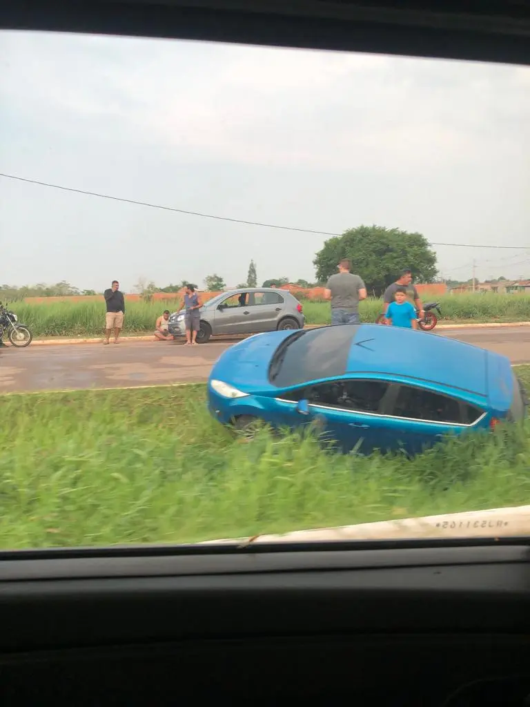 O motorista de um carro modelo Fiesta, de cor azul perdeu o controle e sai da pista após tentar fazer a conversão em uma rotatória e aquaplanar. O carro caiu em uma vala na rua 26 de Junho, no bairro Bom Sucesso, em Rio Branco. O caso aconteceu na tarde desta sexta-feira (13).