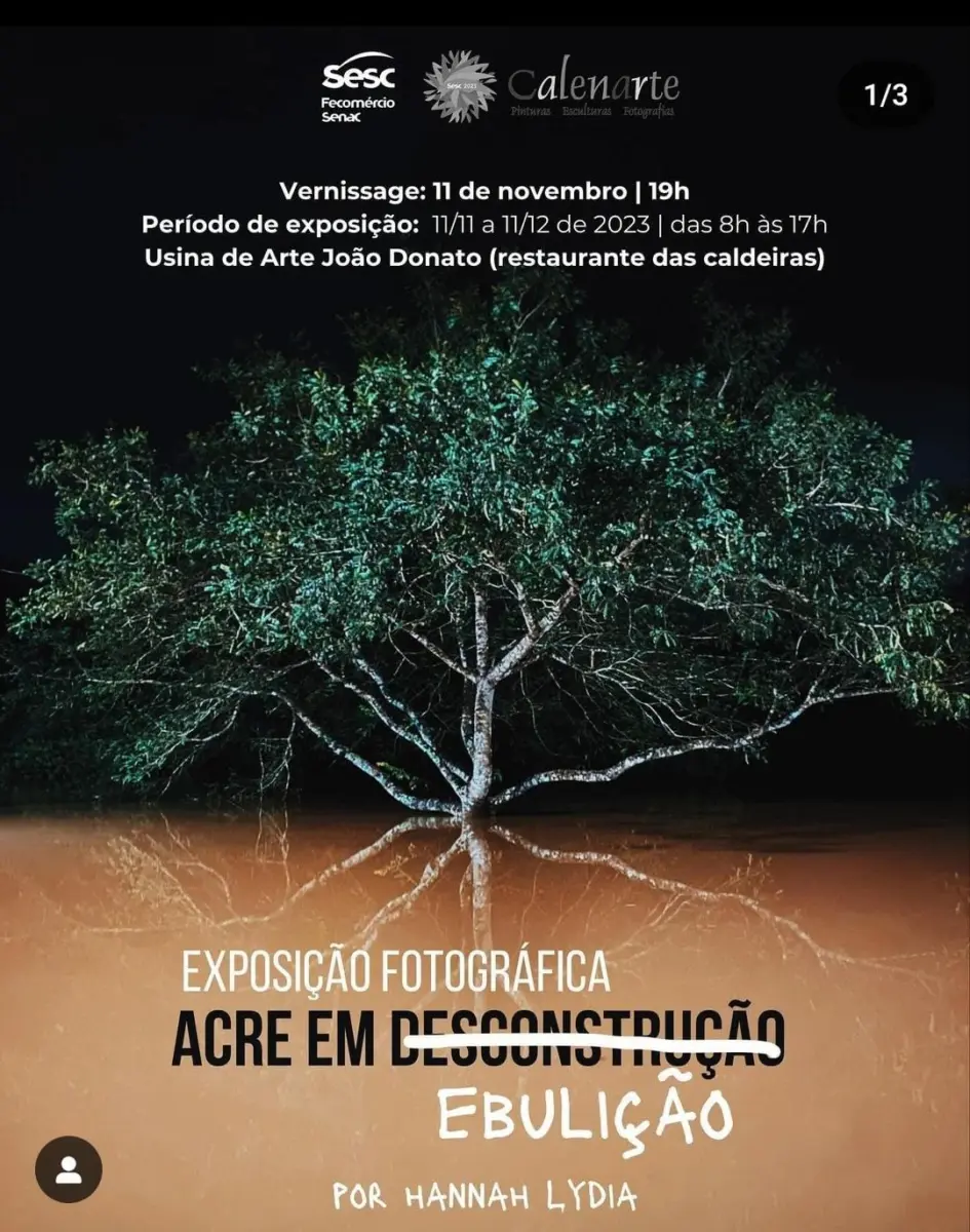 “Acre em -desconstrução- ebulição”, exposição fotográfica da artista visual Hannah Lydia, transformou o acidente climático que ocorreu com as fotos originais em experimento e usou as fotos derretidas para mostrar o processo e as diferentes perspectivas para o olhar sobre a composição, justamente em um momento em que o Acre parece evaporar.