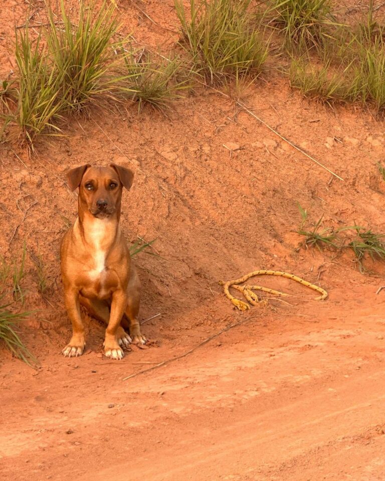 “Depois de muitas tentativas para laçá-lo com a mesma corda com a qual fora abandonado, surgiu um homem que se dispôs a me ajudar. Agimos com bastante tranquilidade na aproximação, mas o animal estava muito assustado. Tão logo conseguimos laça-lo, um cidadão estacionou e desceu do carro. Expliquei que estávamos resgatando o animal. O homem contou que é dono de uma chácara e precisava de um cão, mas carregava dentro do carro uma porca. Insisti para que adotasse o animal e ele aceitou prontamente”, escreveu.