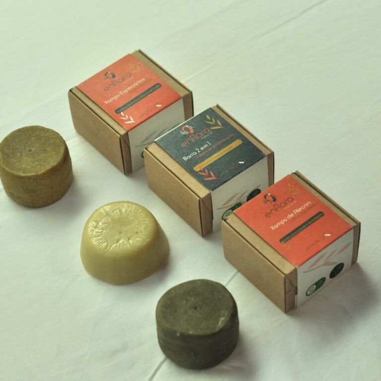 Jéssica é proprietária da Enflora Natural, empresa 100% acreana que carrega consigo um DNA do Norte do Brasil. Na Enflora, a professora oferece produtos como xampu e condicionador em barra de ervas, como alecrim, além de outros produtos como sérum facial de vinho da Amazônia. O mais interessante da história de Jéssica, é que ela mesma começou a fazer, de forma artesanal, os produtos, quando a loja surgiu em 2019.