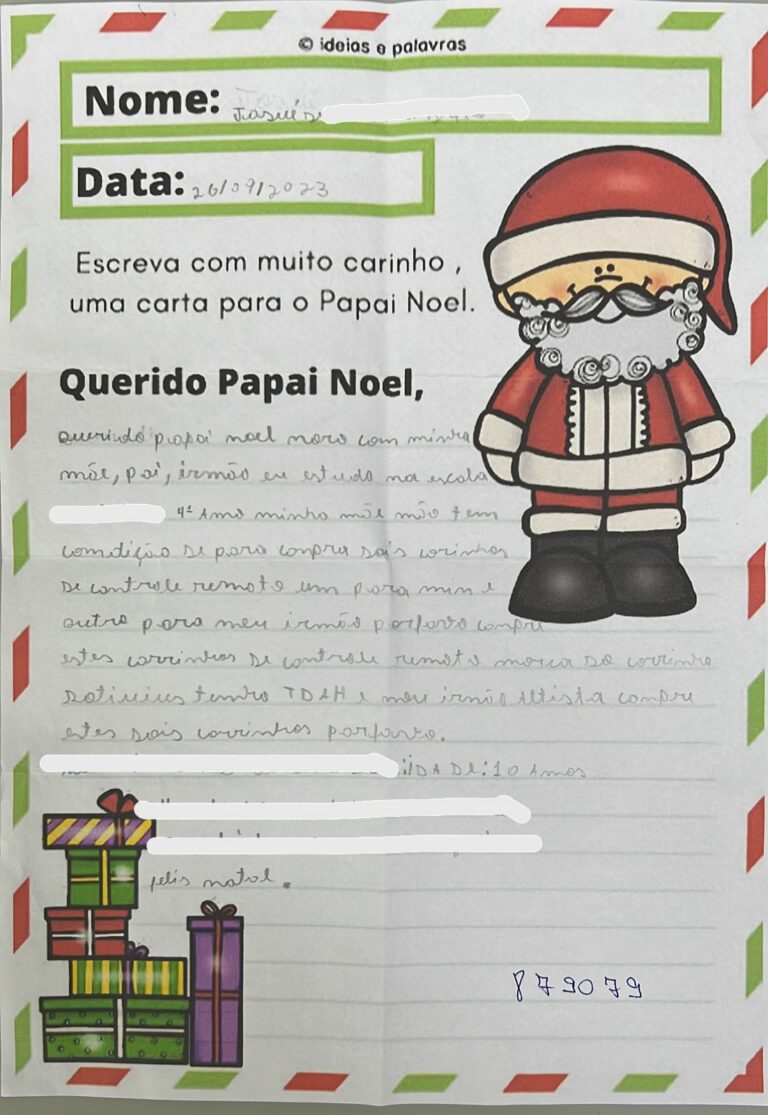 Os dados da criança foram cobertos por segurança. Os Correios afirmou que a cartinha já foi adotada. Veja a foto: