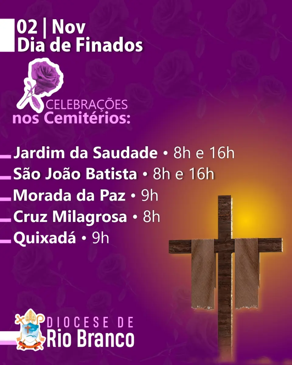 Programação de celebrações do Dia dos Finados. Foto: Diocese de Rio Branco