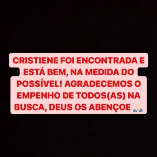 Após intensas 24 horas de angústia e busca incessante, a estudante universitária Cristiene Souza da Silva, que havia desaparecido na terça-feira (14) a caminho da faculdade, foi encontrada pela família nesta quarta-feira (15), no município de Brasileia.