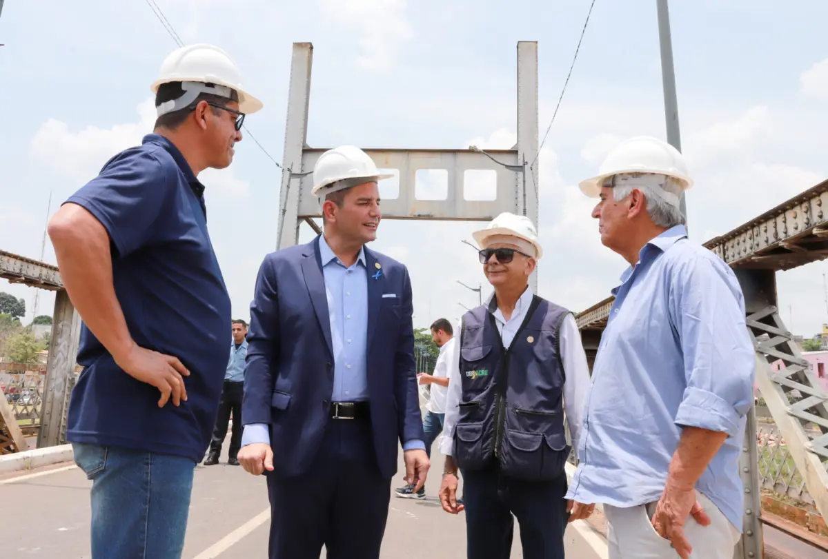 O governador Gladson Cameli visitou, nesta terça-feira (7), as obras na Ponte Metálica, no Centro de Rio Branco, acompanhado pelo presidente do Departamento de Estradas de Rodagem, Infraestrutura Hidroviária e Aeroportuária do Acre (Deracre), Sócrates Guimarães.