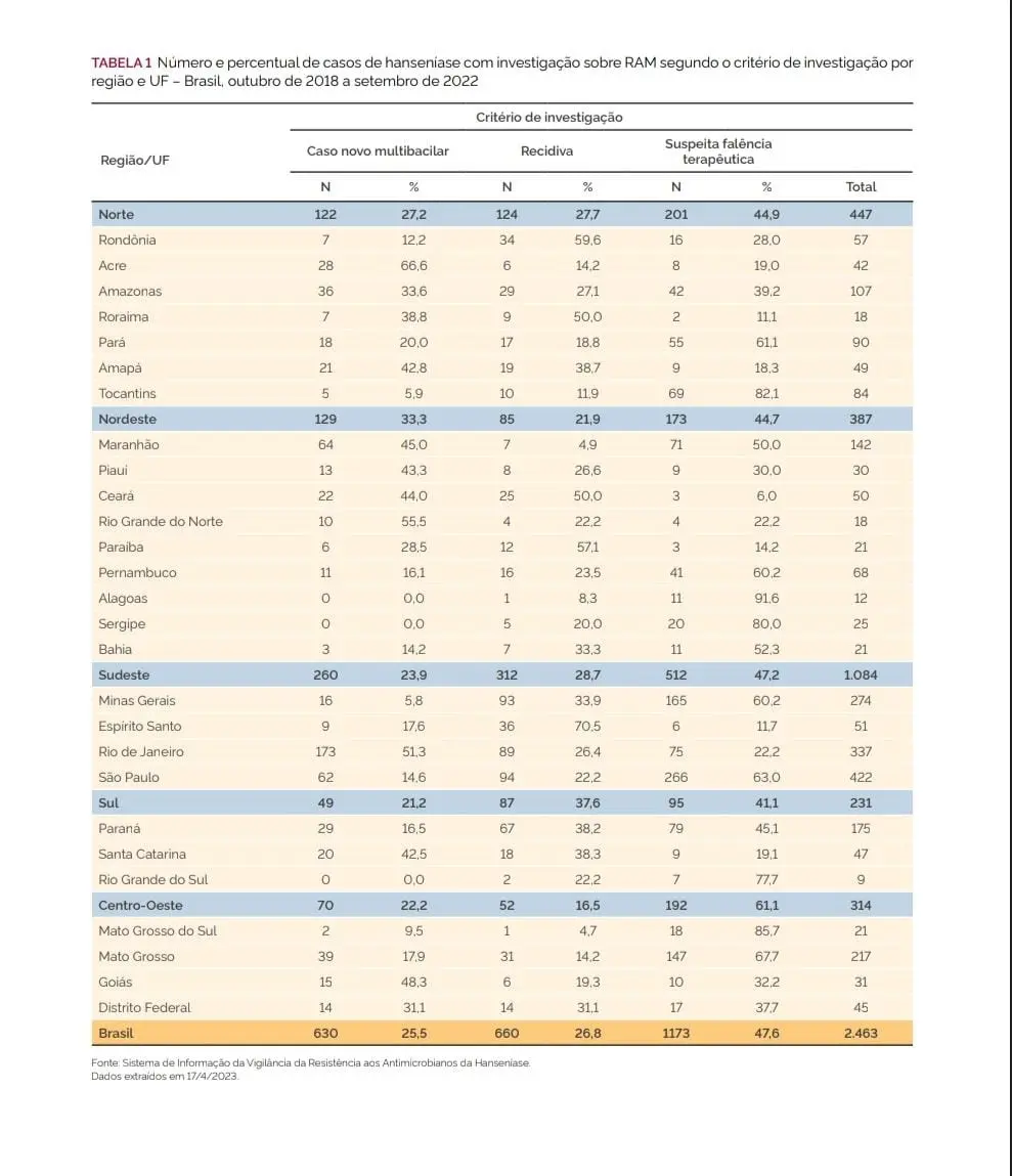 O estudo foi efetuado através de observações dos casos de RAM, ou seja, a resistência do corpo de impedir a infecção, em hanseníase. Foram inseridos no estudo, 2.463 casos da doença, sendo 387 desses na região Norte. A região que mais registrou casos foi a Sudeste, com 1.084. Já o estado com maior número de casos é São Paulo, com 422.