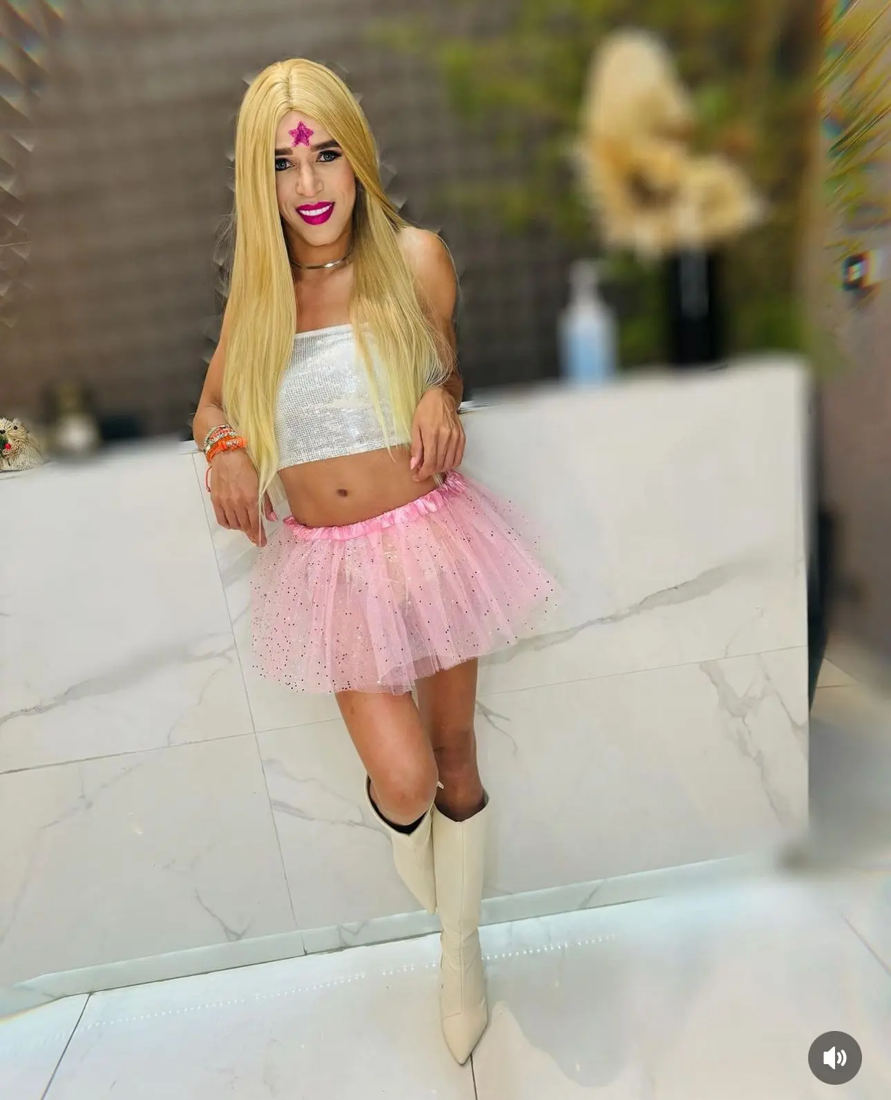 Inspirado no personagem da atriz mexicana, o influenciador acreano não deixou escapar nenhum detalhe, rolou até olhos azuis e a famosa estrelinha na testa, marca registrada de Mia Colucci.