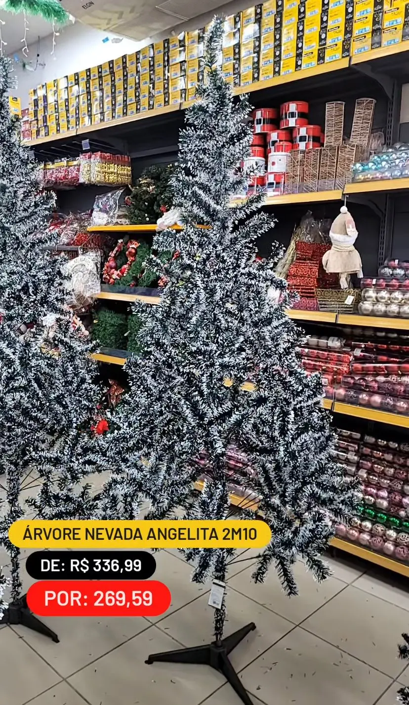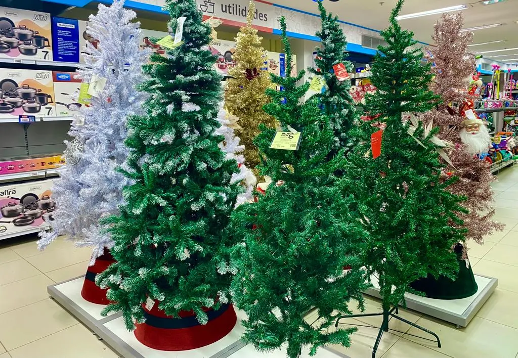 Há também, várias outras opções de tamanhos e preços, como por exemplo, a de 1,8m, que custa R$ 174,99. Já a maior árvore da loja, de três metros, sai a R$ 2.600.