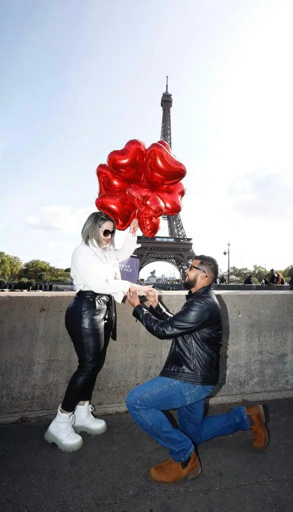 “Dia 04 de novembro 2023, nossa primeira década. E foi assim, nesse cenário lindo, na cidade mais romântica do mundo que o pedido oficial veio.