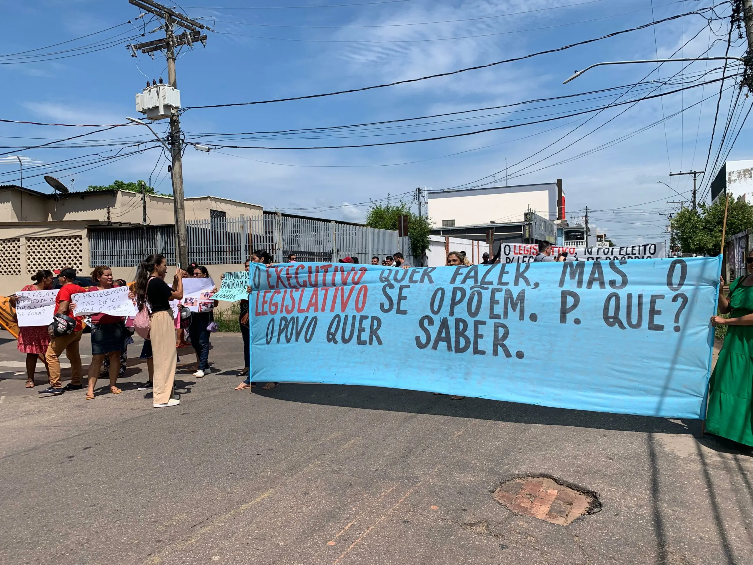 Com faixas escritas ‘O Executivo quer fazer, mas o Legislativo se opõem”, boa parte dos moradores são de bairros da parte alta de Rio Branco.