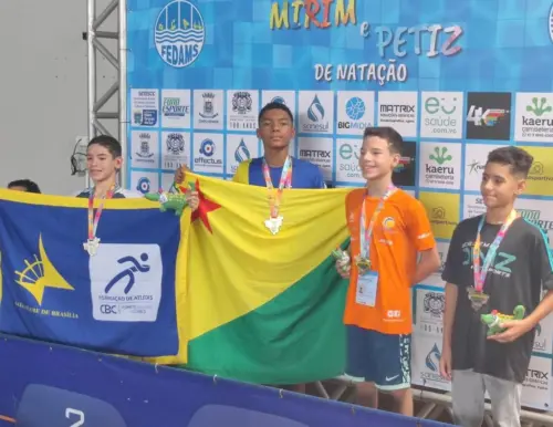 Luiz Antônio Jerônimo,12, começou o Campeonato Centro-Oeste de Natação nesta sexta, 17, em Campo Grande, no Mato Grosso do Sul, honrando todas as expectativas. O garoto acreano conquistou as medalhas de ouro nos 50 metros livres e nos 100 metros peito.