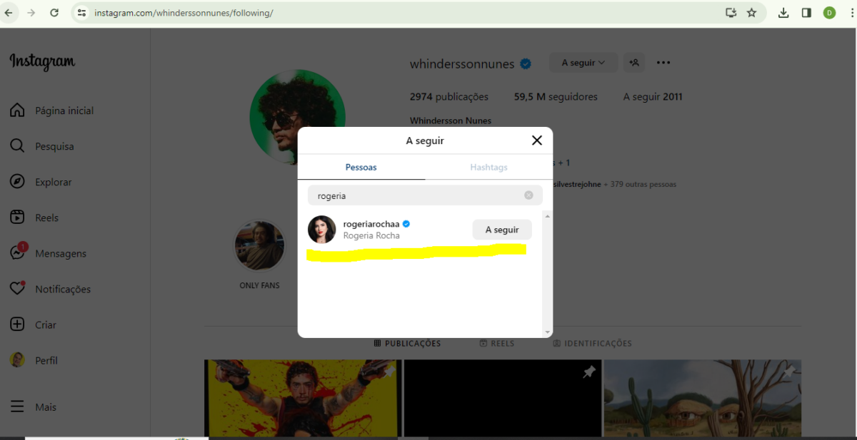 A coluna Douglas Richer obteve, de forma exclusiva, acesso à foto em questão. Vasculhamos a redes da acreana e descobrimos também que o humorista Whindersson Nunes já segue Rogeria Rocha em suas redes sociais, interagindo em suas postagens, o que alimenta ainda mais as especulações de um possível affair’.